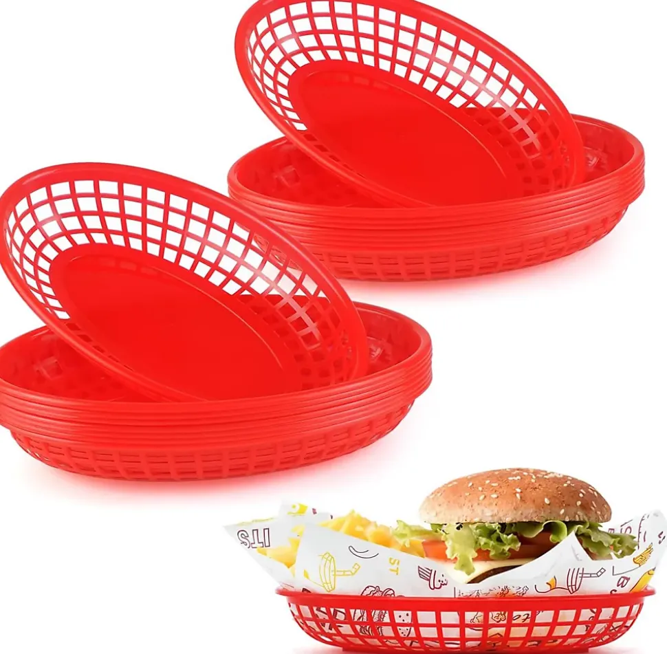 16 Paniers Alimentaires en Plastique Réutilisables rouge