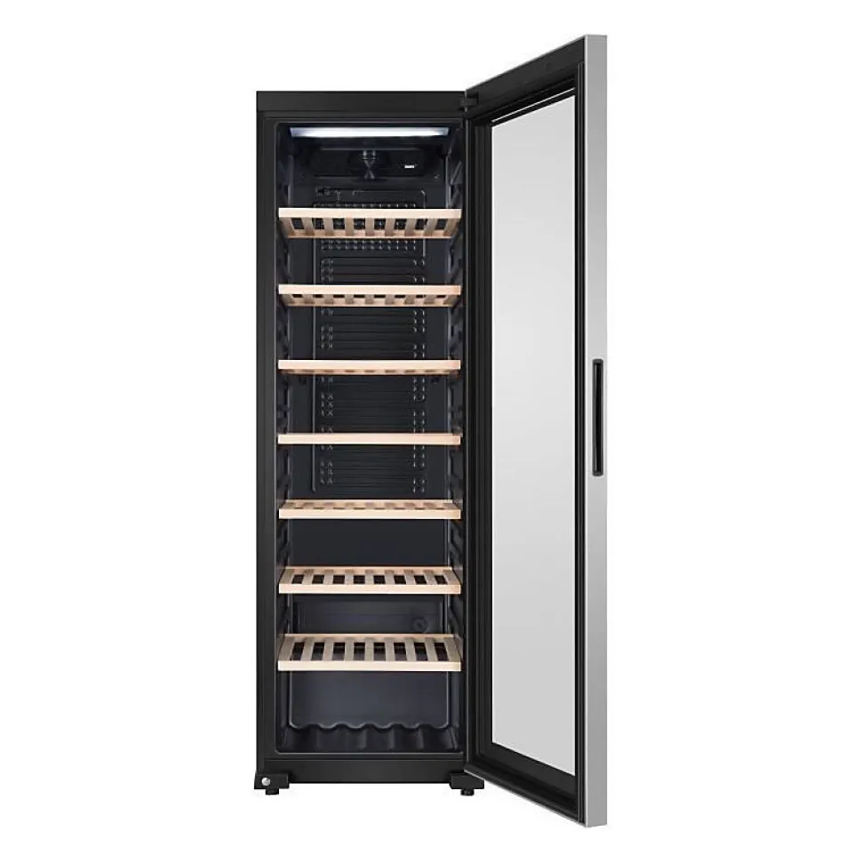 - Organisation intelligente de l’espace avec étagères ajustables, clayettes en bois et porte-bouteilles intégrés.