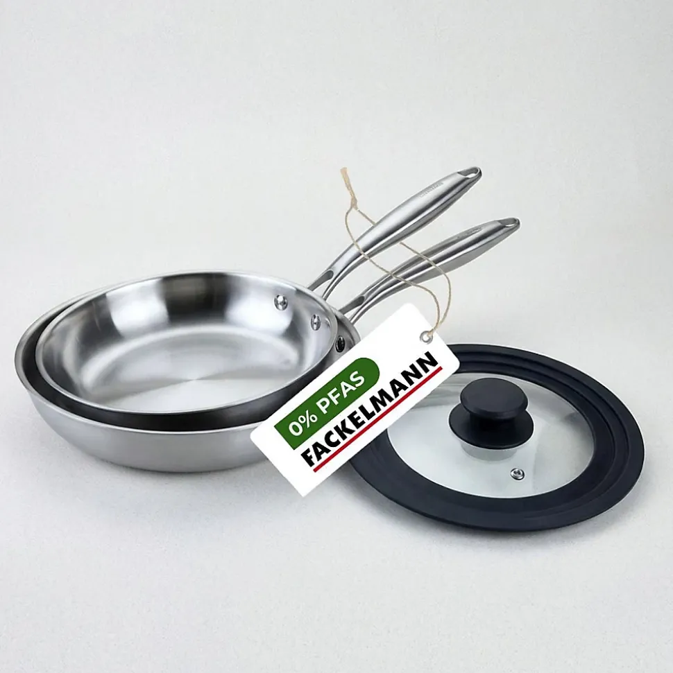 - DESCRIPTION: Ce lot inclut deux poêles Fackelmann Vita3 en inox 18/10 et un couvercle adaptable. Idéal pour une cuisson homogène et saine.