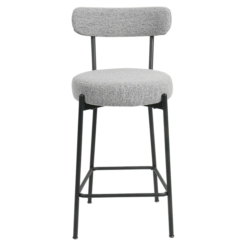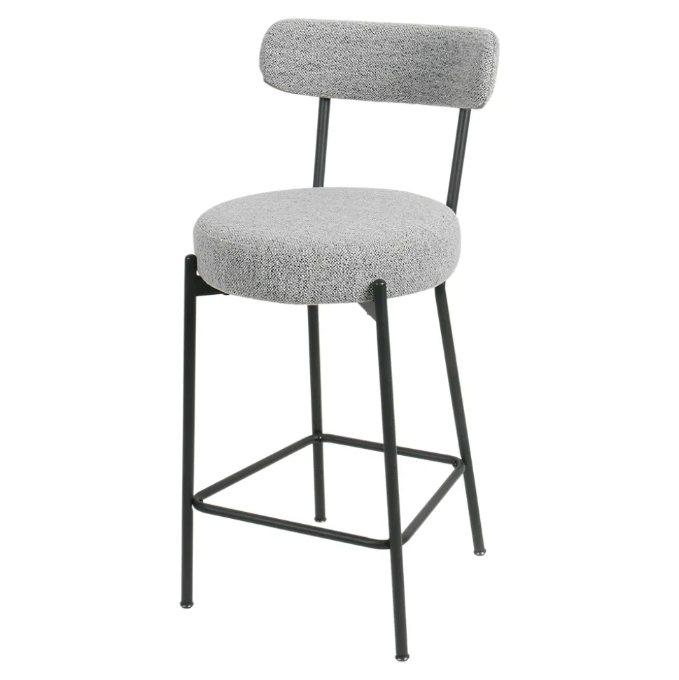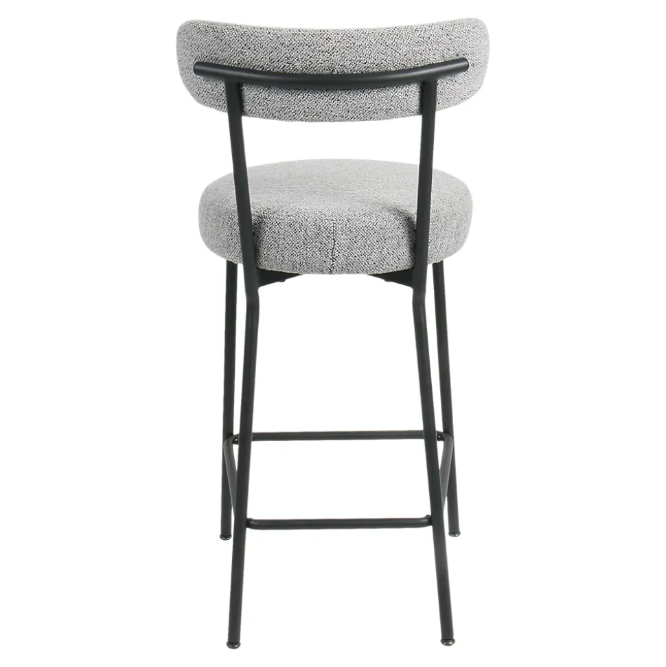 Deux chaises hautes avec assise et dossier en polyester gris, une finition textile effet bouclette, et structure noire. Le repose-pieds vous assure un maintient agréable et le dossier vous offre un véritable confort. Passez des moments chaleureux autour de votre bar ou votre table haute et apportez une touche esthétique à votre intérieur grâce à ces 2 chaises hautes qui vous apporteront toute satisfaction.