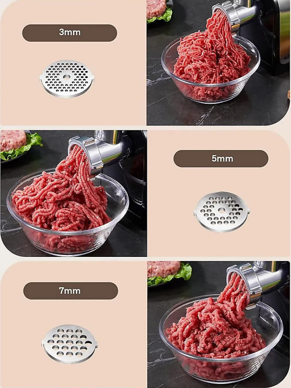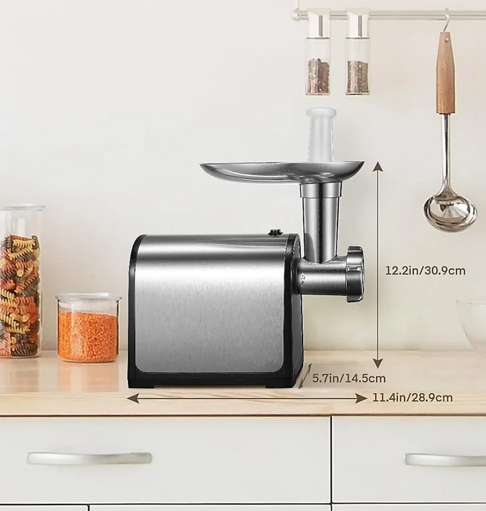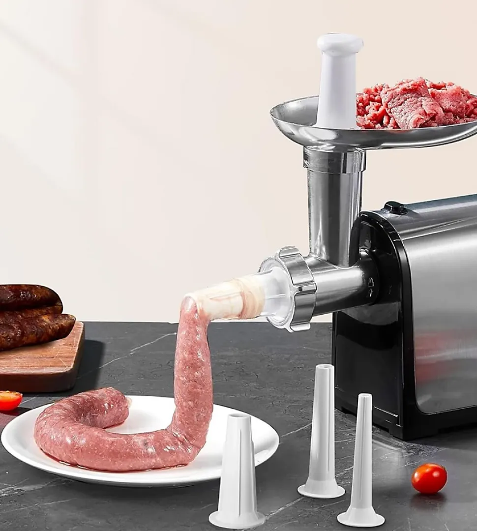 Ce hachoir à viande électrique est un appareil puissant et polyvalent, idéal pour les amateurs de cuisine maison. Grâce à ses trois plaques abrasives en acier inoxydable, il permet de hacher la viande avec précision, offrant des options de broyage fin, moyen et grossier. Les tubes de remplissage inclus sont parfaits pour préparer des saucisses et autres charcuteries, ajoutant une grande flexibilité à vos préparations culinaires.