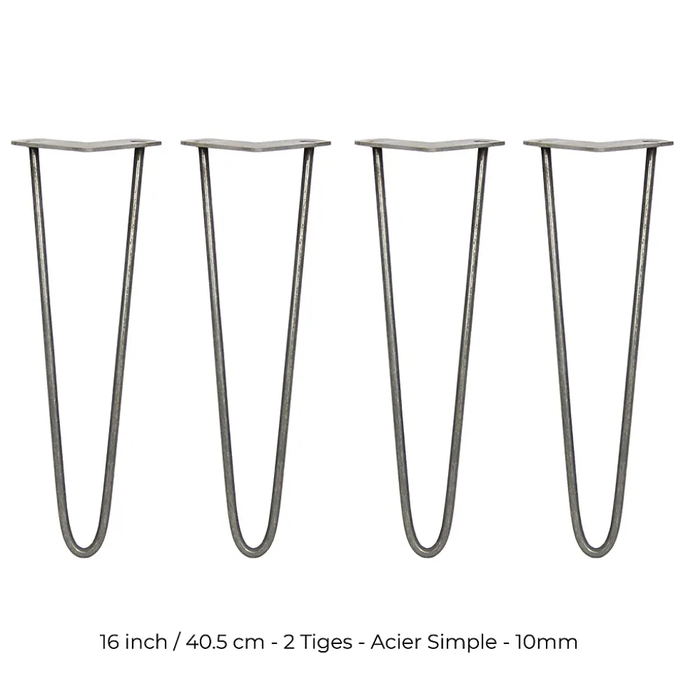 Une offre exceptionnelle en termes de rapport qualité prix, nos pieds de table en épingle à cheveux SKISKI LEGS™ vous offre à la fois qualité et fonctionnalité. Faites place à votre créativité et créer librement vos meubles et tables grâce à ces pieds de table tout à fait unique. Chaque pied en épingle à cheveux est vendu avec un protecteur de pieds de table SKISKI LEGS™ qui vous est offert Gratuitement. Nous les appelons SKISKI LEGS™ parce qu’ils glissent élégamment et sans effort … comme sur une patinoire. Que vous voulez transformer un vieux meuble démodé ou que vous voulez tout simplement commencer un nouveau projet, nos pieds de table SKISKI LEGS™ vous donne l’opportunité d’explorer entièrement votre créativité et de créer des meubles uniques et exceptionnels qui donneront une touche d’authenticité à vos intérieurs. Nos pieds de table en épingle à cheveux sont en disponibles en plusieurs dimensions, designs et finitions. Caractéristiques du produit : 4 robustes pieds de table en épingle à cheveux SKISKI LEGS™ de haute qualité 4 protecteurs de pieds de table SKISKI LEGS™ pour la protection de votre sol 4 protecteurs en polymère permettant aux pieds de table de glisser sans problèmes sur n’importe quelle surface Ensemble de vis de fixation offertsCes pieds de table en acier brut sont tout à fait authentiques. Ils sont vendus légèrement huilés et sont créés pour être perfectionnés et personnalisés à votre guise. Vous pouvez également décider de ne pas les retoucher et laisser la rouille s’installer pour leur donner cette touche retro vintage de style industriel. Caractéristiques techniques du produit: Finition: Acier brut Tiges: 2 Longueur des pieds: 40,6cm Épaisseur: 10mm Poids max supporté: 150kg