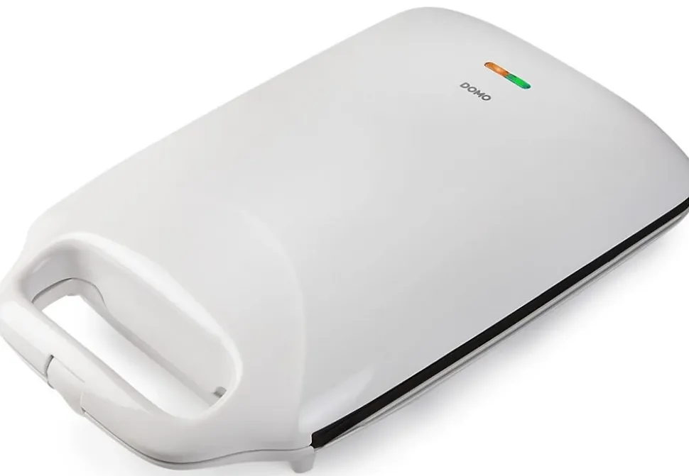 Appareil à croque-monsieur 1800w blanc Domo – Appareil à croque-monsieur Domo DO9064C avec plaques de cuisson extra large fixe pour 4 croques. + 50% surface de cuisson à l?égard d?un croque classique. Cuire rapidement des croques XL pour toute la famille. Deux lampes témoins : courant et prêt à utiliser. – Coloris : Blanc.Puissance : 1800 W.Dimensions des plaques : 27 x 32 cm.Revêtement antiadhésif.Matière du socle : Plastique.Voyant lumineux de mise sous tension.Voyant lumineux prêt à cuire.Extérieur froid.Fermeture fixe.Pieds antidérapants.Poids : 2.45 kg.