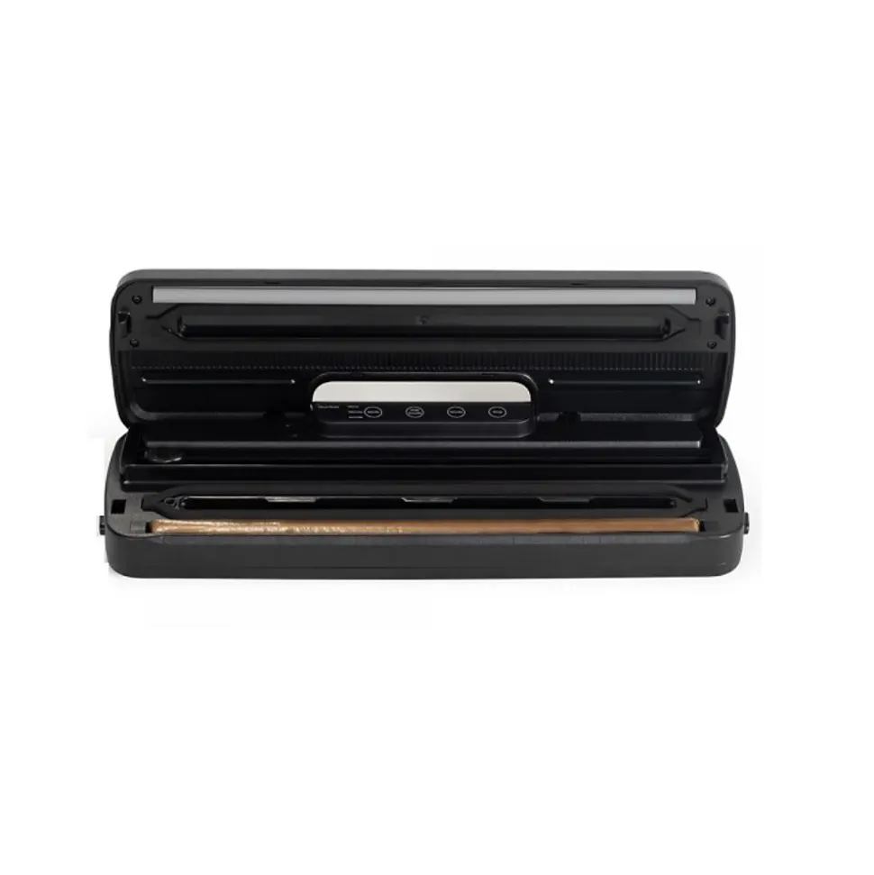 Met sous vide et scelle aliments secs, humides et délicats grâce à 3 modes dédiés; rouleau embossé 28 cm x 3 m inclus; cutter intégré; largeur de soudure 2 mm; films compatibles congélateur, micro-ondes, cuisson sous-vide et bain-marie; design compact en acier inoxydable et plastique mat.