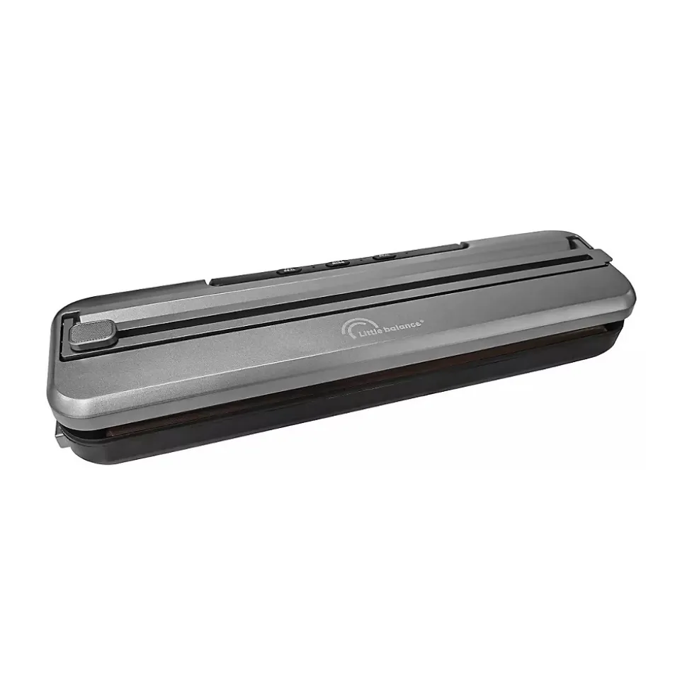 Appareil de mise sous vide 100w gris Little Balance – Appareil de mise sous vide 8768 de Little balance.Plus de gaspillage alimentaire : mettez sous vide vos aliments au retour des courses pour les conserver plus longtemps.Faites des économies : Achetez en grande quantité, répartissez dans de plus petits contenants et mettez sous vide.Conservez au réfrigérateur : Les aliments mis sous vide se conservent de 2 à 5 fois pluslongtemps que les aliments en boite plastique ou sous films alimentaire.Conservez au congélateur : Les aliments sous vide sont protégés des brûlures de la congélation et se conservent cinq fois plus longtemps.Conservation au placard : les biscuits salés et sucrés sous vide gardent leur croustillant ! Les pâtes, le riz, les céréales se conservent sous vide jusqu’à 2 ans.Mangez sain : conservez la saveur et les vitamines de vos aliments tout en les conservant plus longtemps.Gagnez du temps : devenez adepte du batch cooking et conservez vos plats pour toute lasemaine. – Type de produit : Appareil de mise sous vide.Puissance (W) : 100.Compatibilité : Sacs et rouleaux, d’une largeur maximum de 30 cm (Sacs et rouleaux S/M/L/XL).Nbre vitesse(s) d’aspiration : 2.Autre(s) fonction(s) : Mode scellage indépendant, Système de fermeture par double-clic.Accessoire(s) inclus : 1 rouleau 3 m x 30 cm, 3 sacs 30 x 20 cm.Couleur : Gris.Dimensions HxLxP (cm) : 37.5 x 9.5 x 7.Poids (kg) : 1.10.