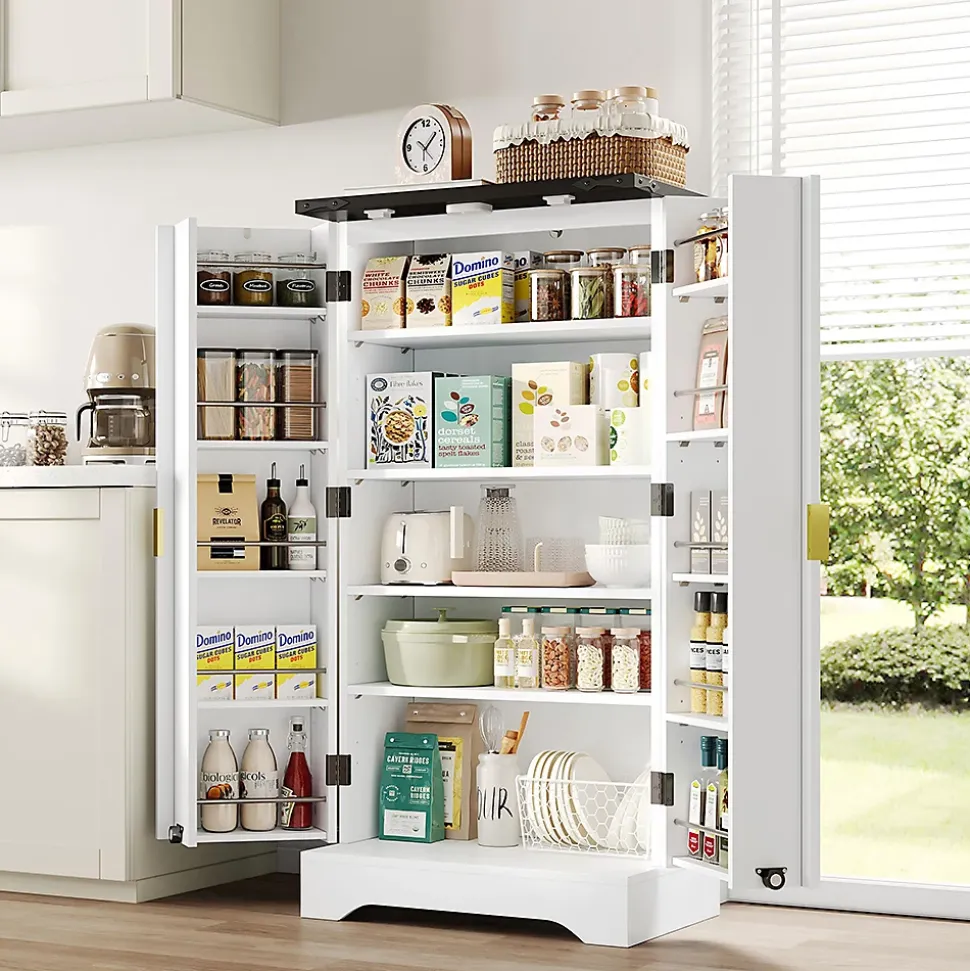 - Rangement spacieux et compartimenté : l’armoire comprend deux étagères réglables en hauteur et deux tablettes de porte réglables qui peuvent être utilisées ou retirées selon les besoins. Rangement flexible des aliments, de la vaisselle, des appareils, des épices et bien plus encore. La construction fermée protège de la poussière et garantit un rangement ordonné.