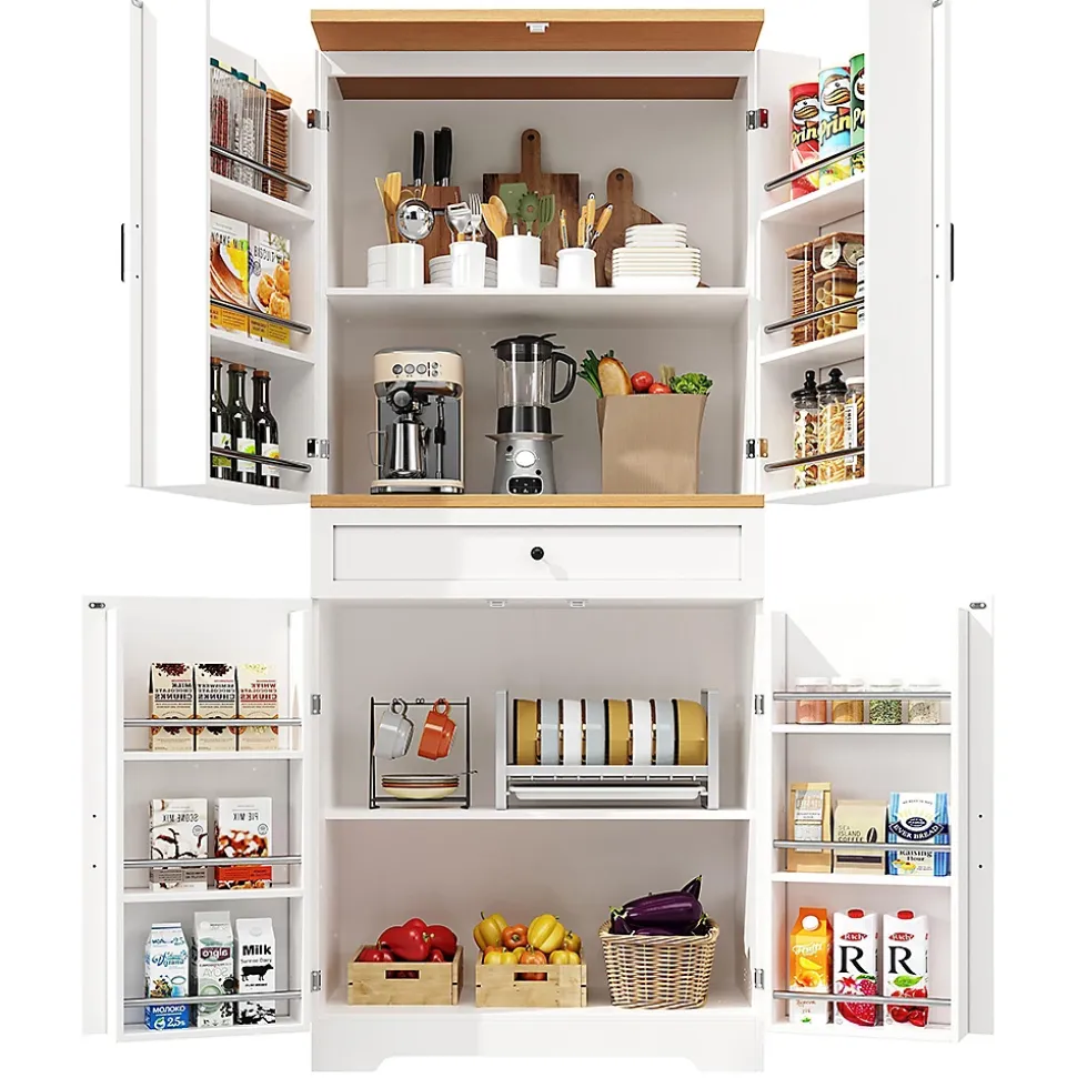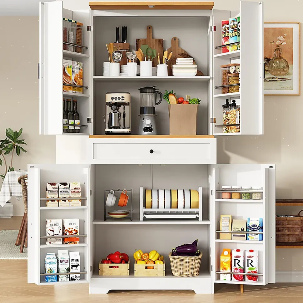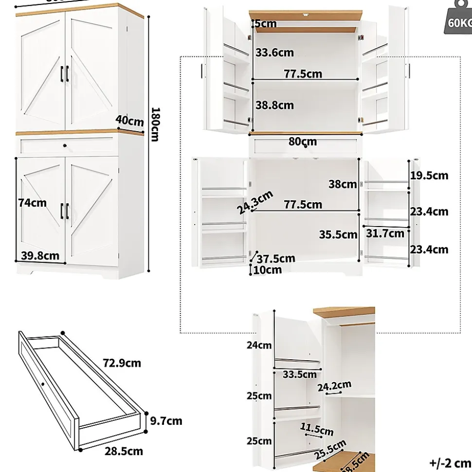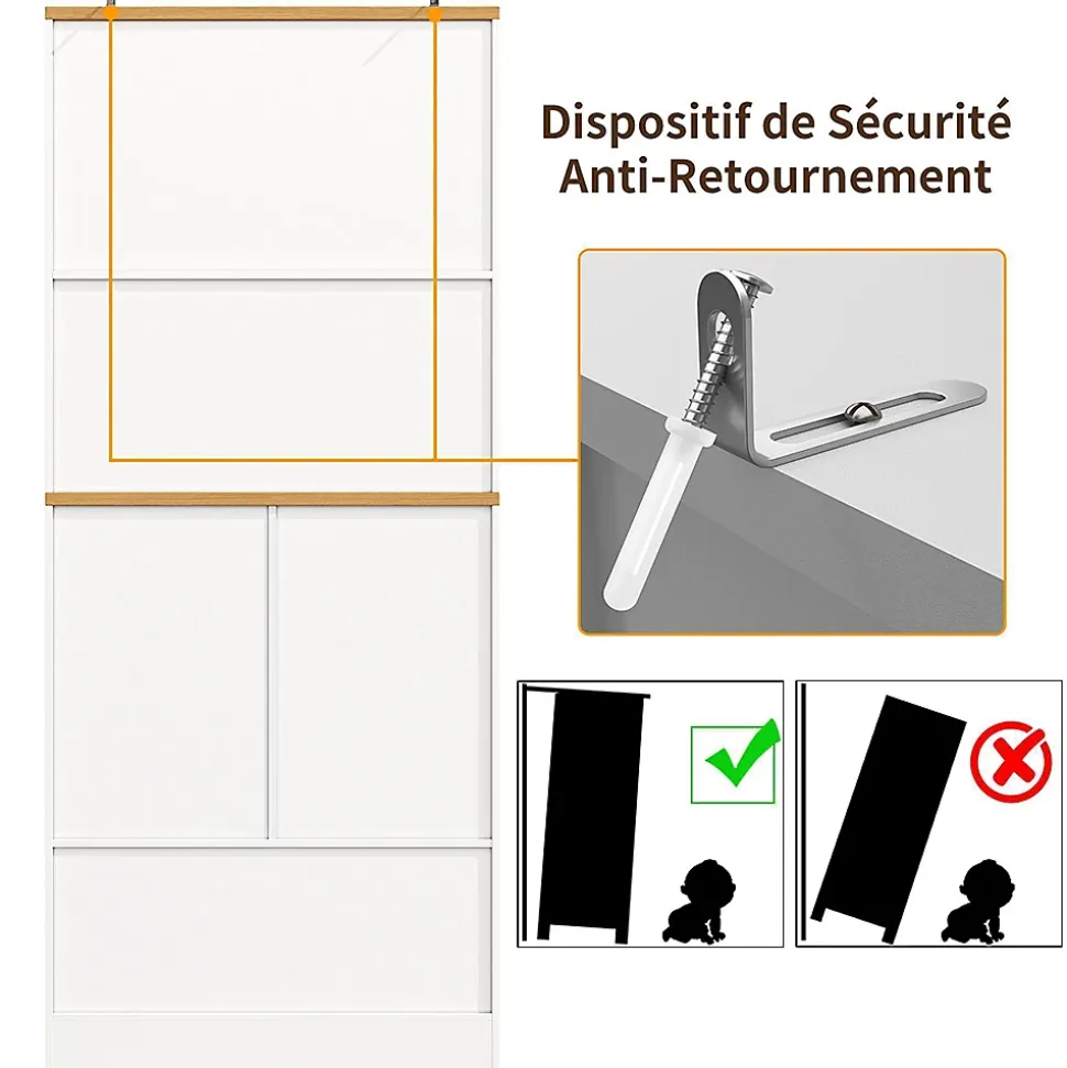 - Armoire haute de haute qualité : fabriquée à partir de panneaux MDF/PB avec un plateau en bois. Les charnières et poignées métalliques garantissent la durabilité et la stabilité de cette armoire à snacks.