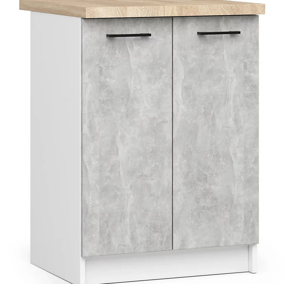 Armoires de cuisine basse AKORD S60 OLIWIA modulable Blanc 60 cm 2 portes façade Béton 2 étagères 60x46x85 cmLe meuble de cuisine pour cuisinière OLIWIA est une proposition pour les personnes qui souhaitent aménager leur cuisine de manière intemporelle et universelle. Le meuble est destiné aux cuisines modulaires, il se caractérise avant tout par un design moderne, mais aussi par une excellente qualité. Le meuble permet de ranger les couverts, vaisselle, nourriture, produits de nettoyage et autres produits nécessaires dans chaque cuisine. Les armoires que nous proposons sont une combinaison de valeurs visuelles, de performances durables et de fonctionnalité. Les poignées lumineuses permettent une ouverture et une fermeture faciles de l’armoire. Le prix avantageux est également remarquable, ce qui rend les propositions de la collection OLIWIA très populaires. Dimensions: Largeur: 60 cmProfondeur: 46 cmSpécification:Matériau: panneau laminé de l’entreprise KronospanEacute;paisseur du panneau: 16 mmQualité du panneau: Certificat E1 *Bordure: ABS 0,5 mmColour: BlancNombre d’étagères: 2Nombre de portes: 2* Certificat E1, classe d’hygiène E1