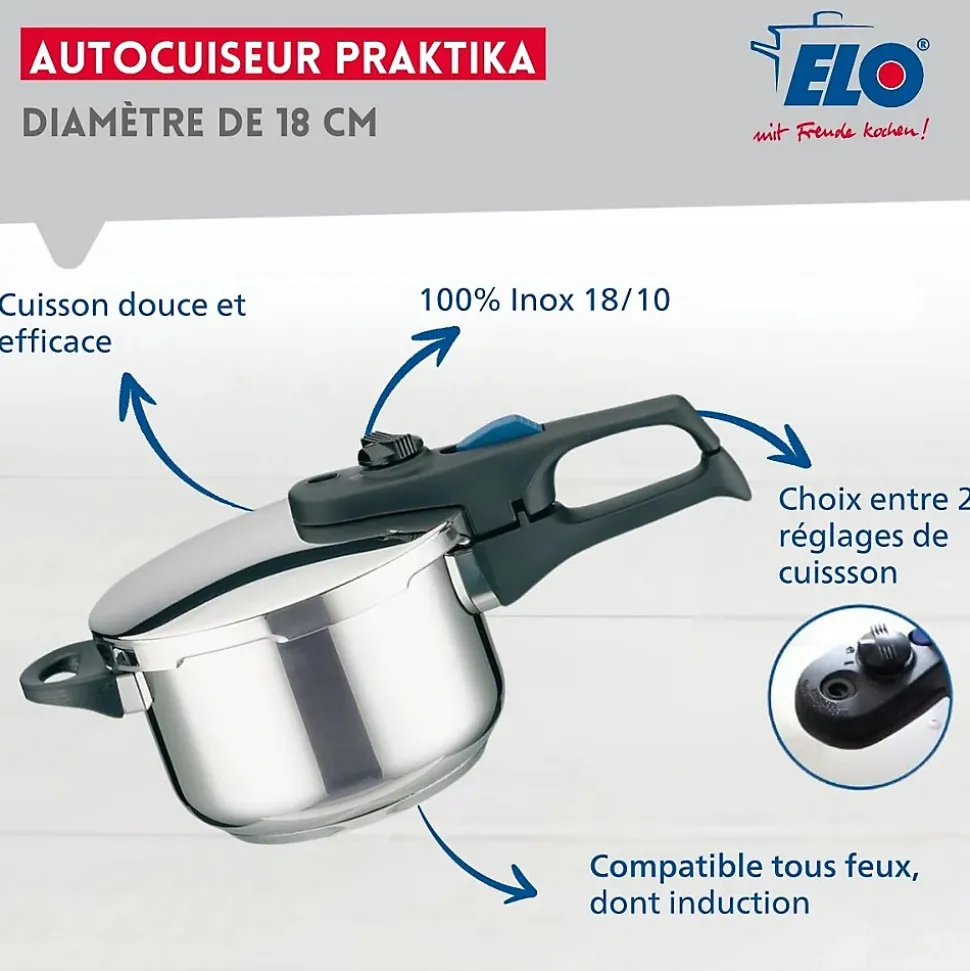- DESCRIPTION : Elo vous propose cet autocuiseur à deux vitesses de cuisson pour réaliser d’excellents légumes cuits à la vapeur ou des plats mijotés beaucoup plus rapidement qu’avec une cocotte classique