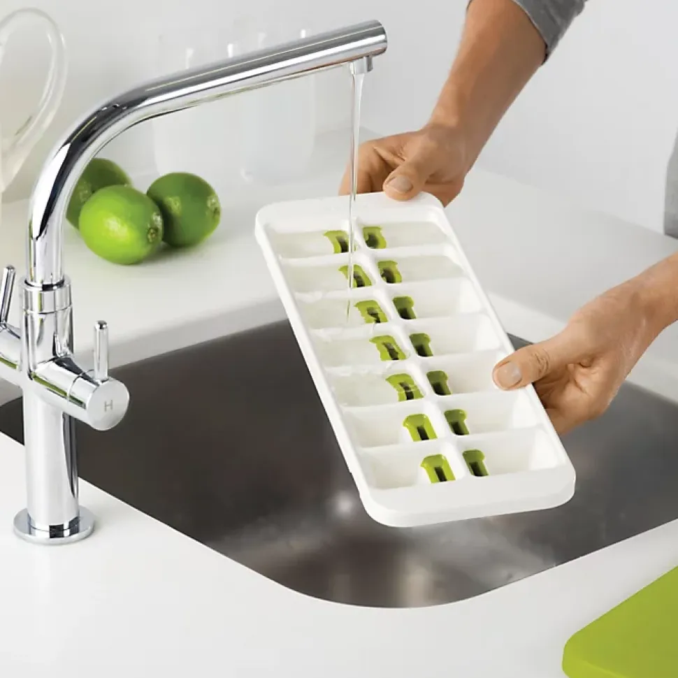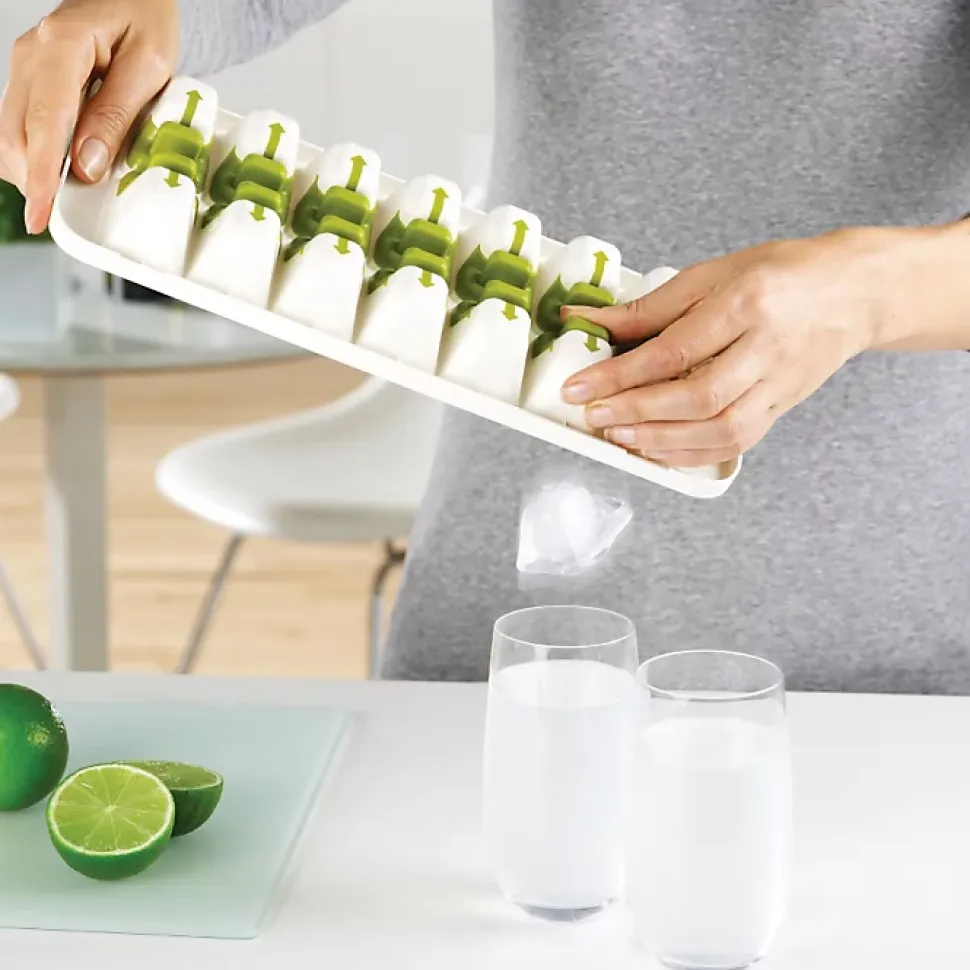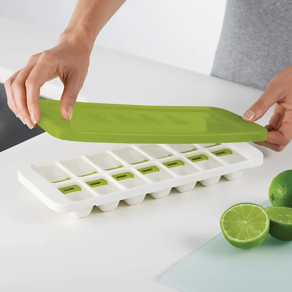 Révolutionnez le stockage de vos glaçons avec ce bac à glaçons astucieux. il est doté d’un système de poussoirs individuels pour maintenir et libérer vos glaçons et d’un couvercle souple qui évite tout débordement dans votre congélateur et empêche l’eau des glaçons d’en absorber les odeurs. quicksnap est idéal pour rafraîchir vos boissons de manière hygiénique, sans toucher les glaçons.Collection : QuickSnap Matière : Plastique Couleur : Vert Longueur : 31 cm Largeur : 13 cm Hauteur : 4 cm Compatible Lave-vaisselle