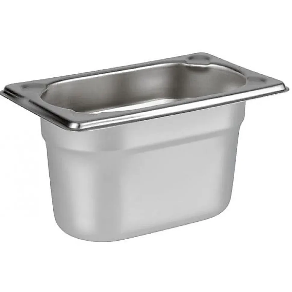 Bac Inox GN 1/9 176 x 108 x 100 mm Bac gastronorme en acier inoxydable au chrome-nickel avec surface polie par électrolyse (mate satinée), lavable au lave-vaisselle, empilable.Capacité : 1 litre Bac gastro de qualité professionnelle idéale pour cantines, restaurants, hôtels, traiteurs, association, collectivité.