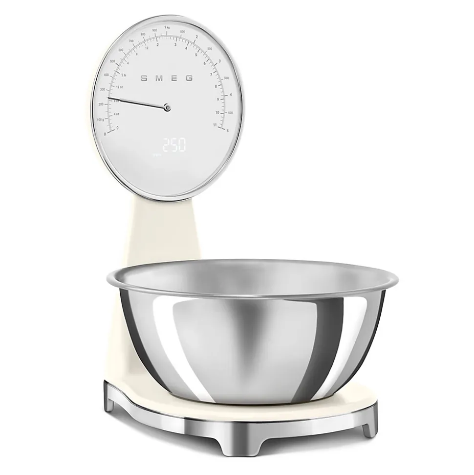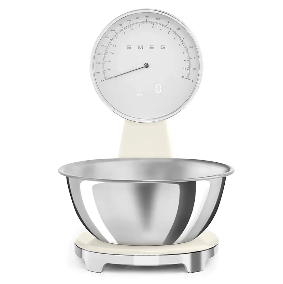 Balance de cuisine électronique 5kg-1g crème Smeg – Balance de cuisine Années 50 KSF01CRWW de Smeg. – Type : Balance de cuisine.Type : Analogique et numériqueGamme : Années 50.Type : Electronique.Pesée maximale (en kg) : 5.Précision (g) : 1.Matière plateau : Base plastique.Ecran : Oui.Type d’écran : LED et analogique.Type de commandes : Levier.Bluetooth : Non.Tare Automatique : Oui.Conversion des liquides : Oui.Autre(s) fonction(s) : Mode veille, Mesure de l’unité.Type de chargement : Par USB.Interrupteur : Oui.Durée de vie de la batterie : 36 heures.Bol inclus : Oui.Fonction de tarage : OuiAlimentation électrique : Batterie rechargeableType de prise : Li-Ion 1200 mAhCâble USB-C : Oui.Longueur du câble d’alimentation : 39.Finition / Nuance : Brillant.Couleur : Crème.Couleur(s) secondaire(s) : Inox.Dimensions (cm) : 31.5 x 18 x 25Poids (g) : 1.59.