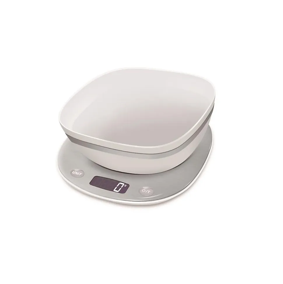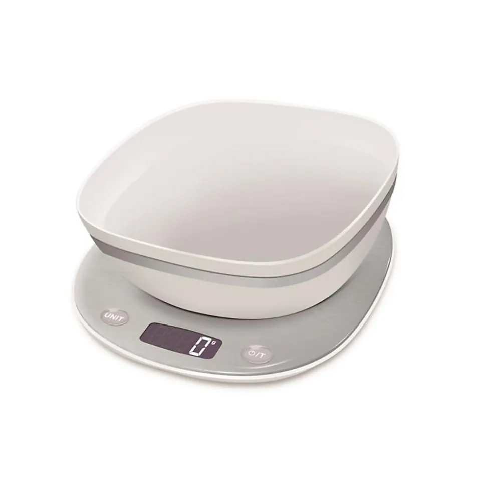 Balance 5 kg + bol – MACARON GLACEE BOL (15254) – Pour que la cuisine soit toujours un plaisir – Découvrez la graduation dynamique pour ajuster au plus près vos recettes : Pèse à 0,5 g près jusqu’à 1 kg et à 1 g de 1 à 5 kg – Très pratique, sa fonction Auto-off vous permettra de personnaliser le temps d’allumage de votre balance (Eco, Normal ou Long) – Elle possède un grand écran (LCD 51 x 22 cm), une mise à zéro automatique après chaque pesée, une fonction de conversion g/ml et un arrêt automatique – Plateau finition glossy – Fonctionne avec 2 piles AAA non incluses – Coloris inox & blanc – Garantie 2 ans.