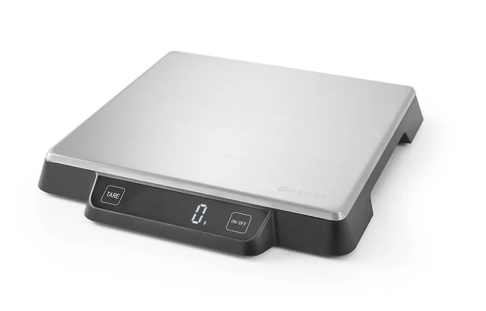 Balance de cuisine Balance de cuisine Peut peser jusqu’à 15.000 g avec une précision de 1g et avec un poids minimum 2g. Surface en inox sans soudure, structure faite en plastique HIP5 avec un écran numérique intégré. Le capteur de poids de haute précision permet une mesure précise. La lecture se fait en gramme. Ecran tactile : marche / arrêt et tare. Avec tare automatique, information de surcharge et batterie faible. Arrêt automatique, fonctionne avec 3 piles AAA (non comprises) l18- L0.1- P16.5- h3.1- ABS