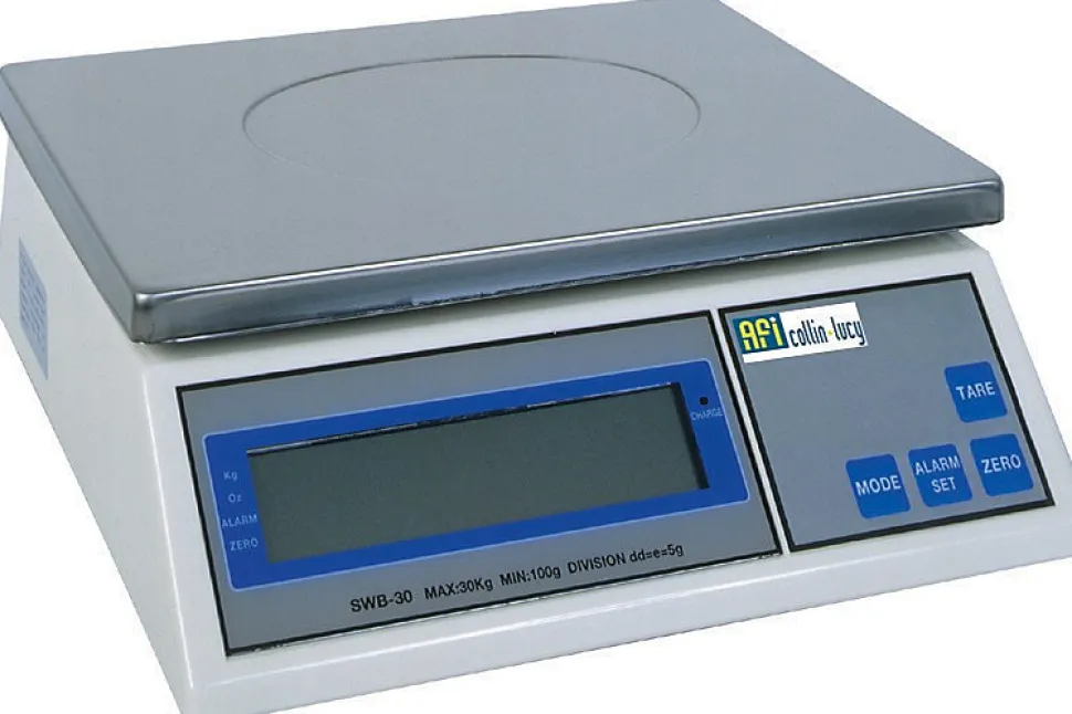 AFI Collin-Lucy balance. Balance de cuisine professionnelle, AFI Collin Lucy électronique, série standard robuste, fiable et précision. Balance protégée contre environnement humide, résistante aux poussières et à la corrosion et simple d’utilisation.Non poinçonnée, la lecture aisée grâce à un affichage par cristaux liquides de 27 mm de haut. Le tableau de commande est ergonomique. Fonctionne sur accumulateur incorporé (autonomie 100 heures). Transfo incorporé et équipé d’une sécurité en cas de surcharge.Capacité: 6 kilos – 1 grammePoids (kg): 5Largeur: 300 mmProfondeur: 320 mmHauteur: 130 mm