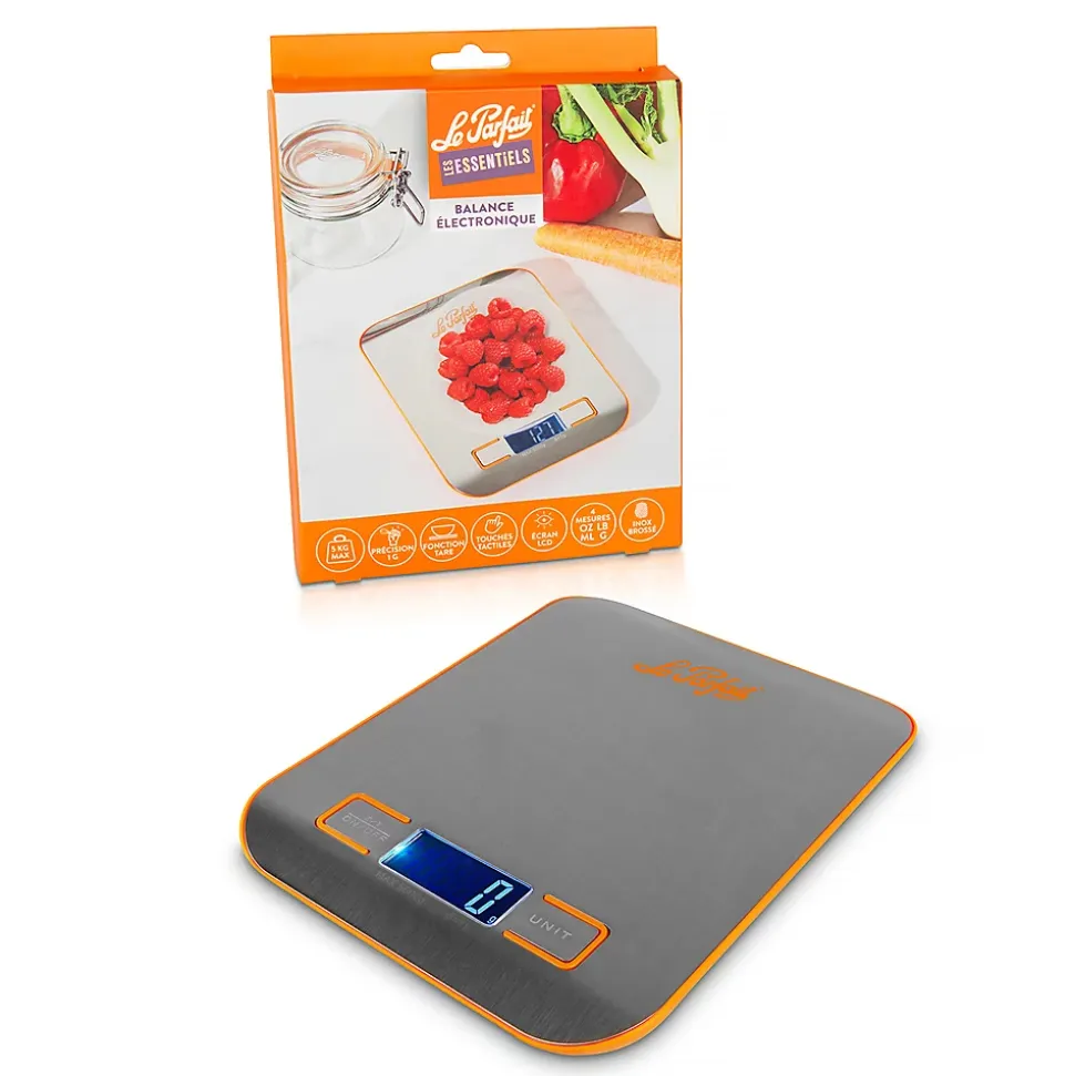 Découvrez la Balance électronique inox 5 kg Le Parfait, votre alliée indispensable en cuisine pour des pesées précises et fiables. Avec une capacité maximale de 5 kg et une précision à 1 g près, cette balance vous assure des mesures exactes pour toutes vos préparations culinaires.Dotée d’une fonction tare, elle permet de remettre le poids à zéro après chaque ajout d’ingrédient, simplifiant ainsi vos recettes les plus complexes. Les touches tactiles apportent une expérience d’utilisation fluide et intuitive, tandis que l’écran LCD garantit une lecture claire et facile des valeurs.Polyvalente, la Balance électronique inox 5 kg Le Parfait vous offre des options de mesure en oz, lb, ml, et g, répondant ainsi à tous vos besoins de pesage. Son design en acier inoxydable brossé ajoute une touche d’élégance à votre cuisine.Collection : ACCESSOIRES Matière : Acier inoxydable (inox) Couleur : Argent / Métallique Longueur : 18.00 cm Largeur : 14.00 cm Hauteur : 2.00 cm Compatible Lave-vaisselle