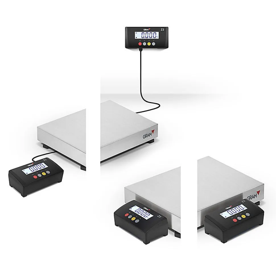 Balance électronique professionnel 150 kgMODÈLE Z3T-F2-150 Capacité (kg) :150 Résolution (g) : 20 Unitées de pesée g (kg), lb, ozEcran LCD rétro-éclairé / 5 chiffres 25 mm (hauteur chiffre ),Avertisseur acoustique Connectivité : RS 232-C Wireless (optionnel) Vitesse de transmission 9.600 / 19.200 / 38.400 / 57.600 baudsNombre bits et parité 8 bits, sans parité, 1 bit stop Alimentation 230 V Adapter / 50 Hz (Euro) 7,5 V 1ABatterie 6V-1.2Ah – 30 / 60 heures d’autonomie Température de travail +5 ºC / +35 ºC Dim. externes plateforme (mm) 500 x 400 x 122 Dim. externes pos. 1 (mm)620 x 400 x 122 Dim. externes pos.2 (mm) 500 x 520 x 122 Poids net total (kg) 8 ,5 Dim. emballage (mm) 750 x 490 x 150 Poids total avec emballage ; 10 kgA protéger des liquides et de la poussière (eau et farine)