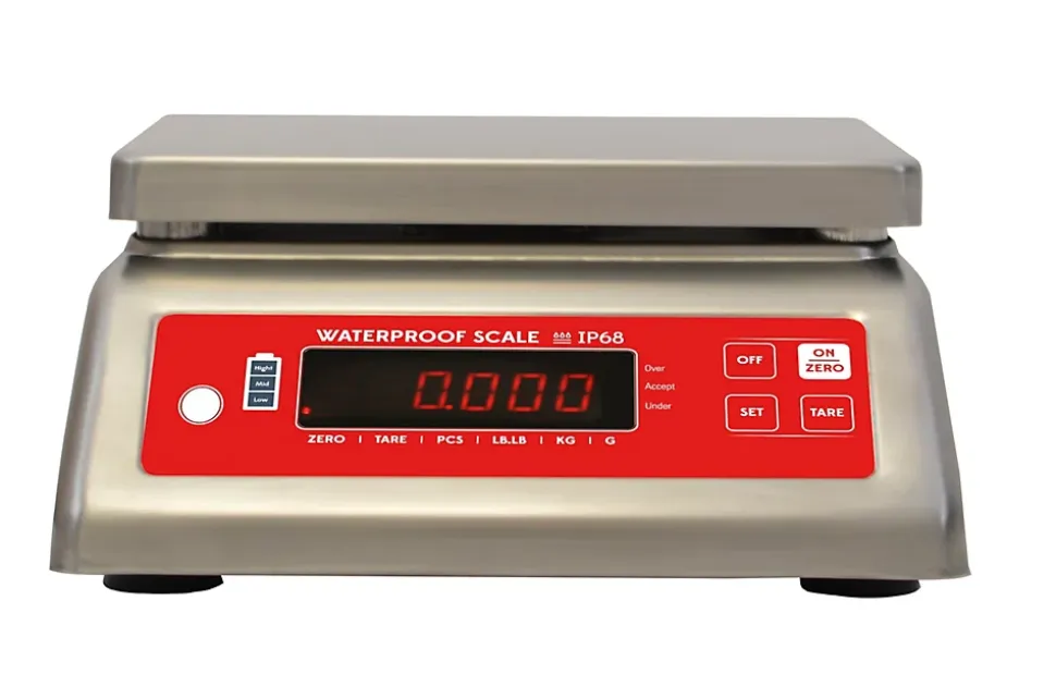BALANCE PETITES PREPARATIONS PORTEE 7,5 KG PRECISION 0,5 GRAMMEL (en mm) : 287 – P (en mm) : 235 H (en mm) : 100 Balance de préparation certifié contact alimentaire Etanche IP68 avec une précision au 0,5 gr – Résolution 0.1gr Recommandé en cuisine, labo ou univers humide Pesage / Tarage / Auto-zéro Auto-off 10min / Rétro-éclairage Voyant surcapacité – Autonomie : 70h Batterie Battery 6V/4Ah rechargeable + alimentation externe Plateau inox 304 : 188×226x1mm 1 Ecran 83×29,5mm + 2eme Ecran Usage :professionnel, Métiers de bouche, agriculteurs, Agro-alimentaire