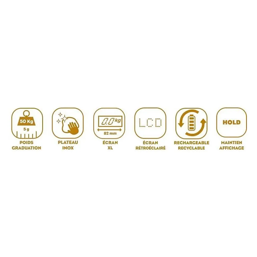 - Précision métrologique avec capteurs haute performance et graduation à 5g/10g jusqu’à 50 kg.
