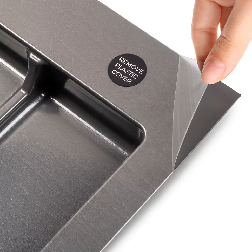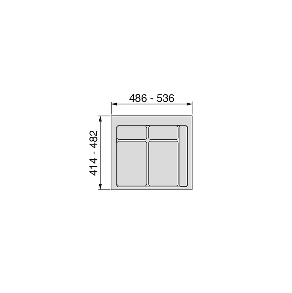 Aspect : Coloris = Gris anthracite • Matériau principal = Plastique • Dimensions : Hauteur (en cm) = 6,50 • Longueur (en cm) = 56 • Profondeur (en cm) = 52,50 • Autres caractéristiques : Informations complémentaires = Base pour bacs de tri , 2 emplacements , Pour module de 60 cm de largeur , Bords à découper pour les adapter aux dimensions intérieures du tiroir • Poids (en kg) = 0,88 • Base Recycle pour poubelles pour tiroir de cuisine