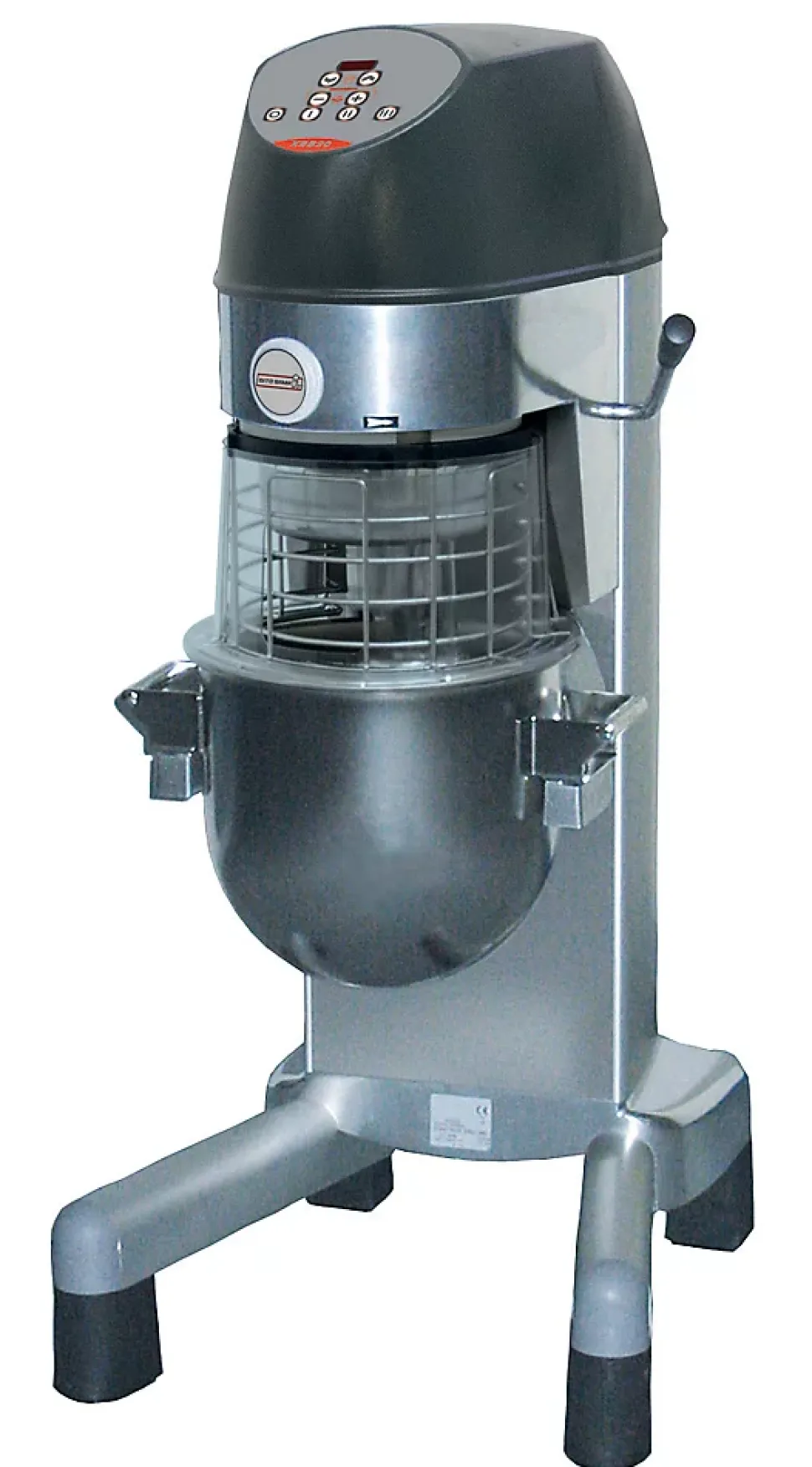 Adapté pour la boulangerie et la pâtisserie, ce batteur mélangeur est conçu pour une utilisation professionnelle intensive. Sécurité utilisateur par détection de la cuveVitesse de mélange : > avec paletteL’écran plein de sécurité et l’écran fil inox, sont amovibles et se démontent sans outils pour faciliter le lavage au lave-vaisselleMécanisme planétaire protégé contre les projections d’eauGoulotte amovible disponible en standard pour ajouter des ingrédients tout en travaillantVitesse d’émulsion : > avec fouetPieds réglables pour une bonne stabilitéBatteur mélangeur professionnel adapté aux exigences rigoureuses de la boulangerie et de la pâtisserieVitesse de pétrissage : > ou > avec crochet.La montée et l’abaissement de la cuve sont contrôlés par un levier avec blocage automatique de la cuve en position relevéeChâssis renforcé, pieds et transmission conçus pour des travaux intensifs.Capacité maximum (Détrempe en farine 60 % d’hydratation) 7 kgPanneau de commande étanche à boutons tactiles avec minuterie, réglage et affichage de la vitesse3 vitesses préprogrammées modifiables : 40, 80 et 160 tr/minCaractéristiques techniques :