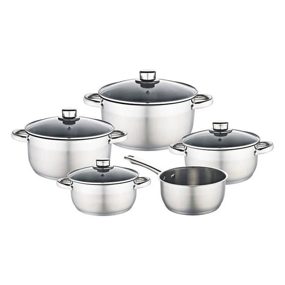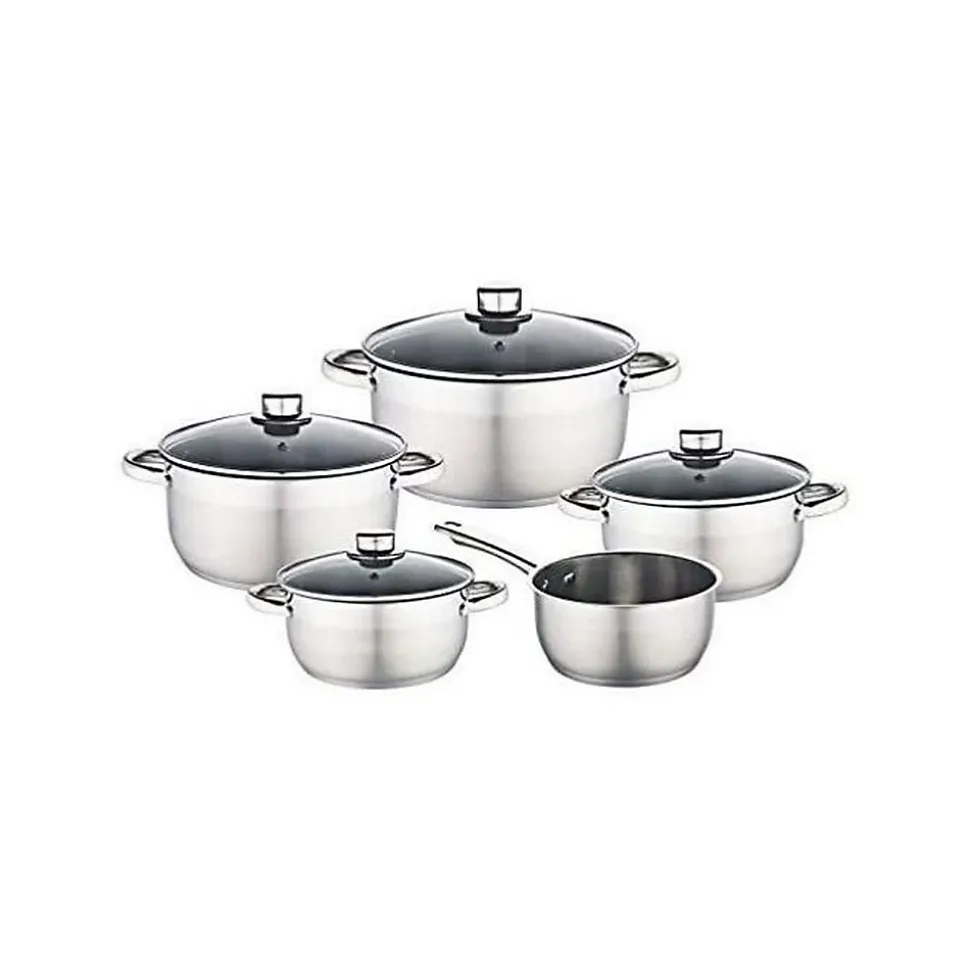 - Ensemble 9 pièces en acier inoxydable avec base multicouche épaisse compatible induction pour une cuisson sur toutes les plaques.