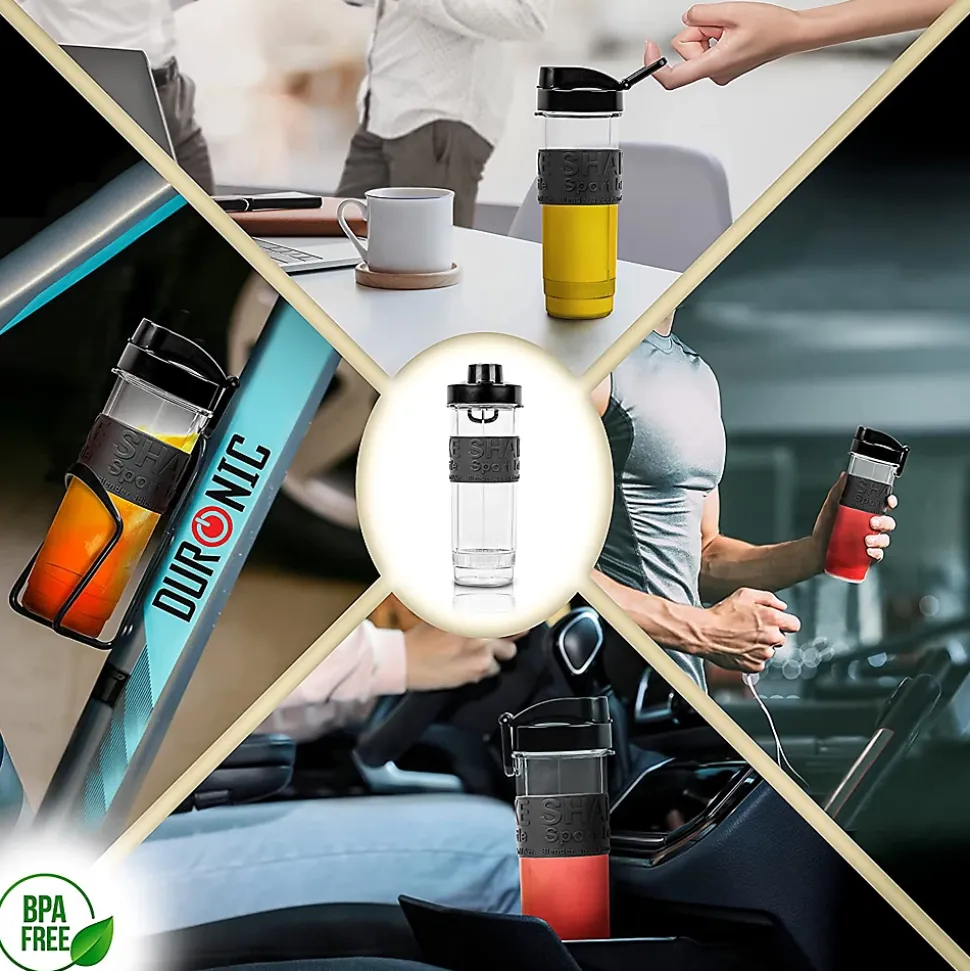 Emportez vos smoothies ou shakes protéinés partout avec vous grâce à cette bouteille de 570 ml.La bouteille BB5 est compatible avec les blenders BL510 et BL520 de Duronic. La BB5 est sans BPA et mesure 23 x 8 cm.Vous pouvez installer votre bouteille sur votre vélo, l’emporter en voiture, à la salle de sport, au travail.Vous pouvez préparer des jus, des smoothies, des boissons protéinés pour le sport.Une bouteille de 400 ml est également disponible : la BB4 de Duronic.