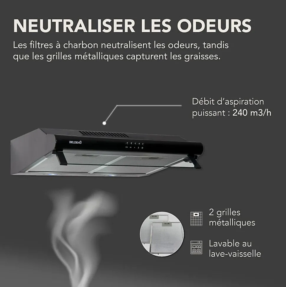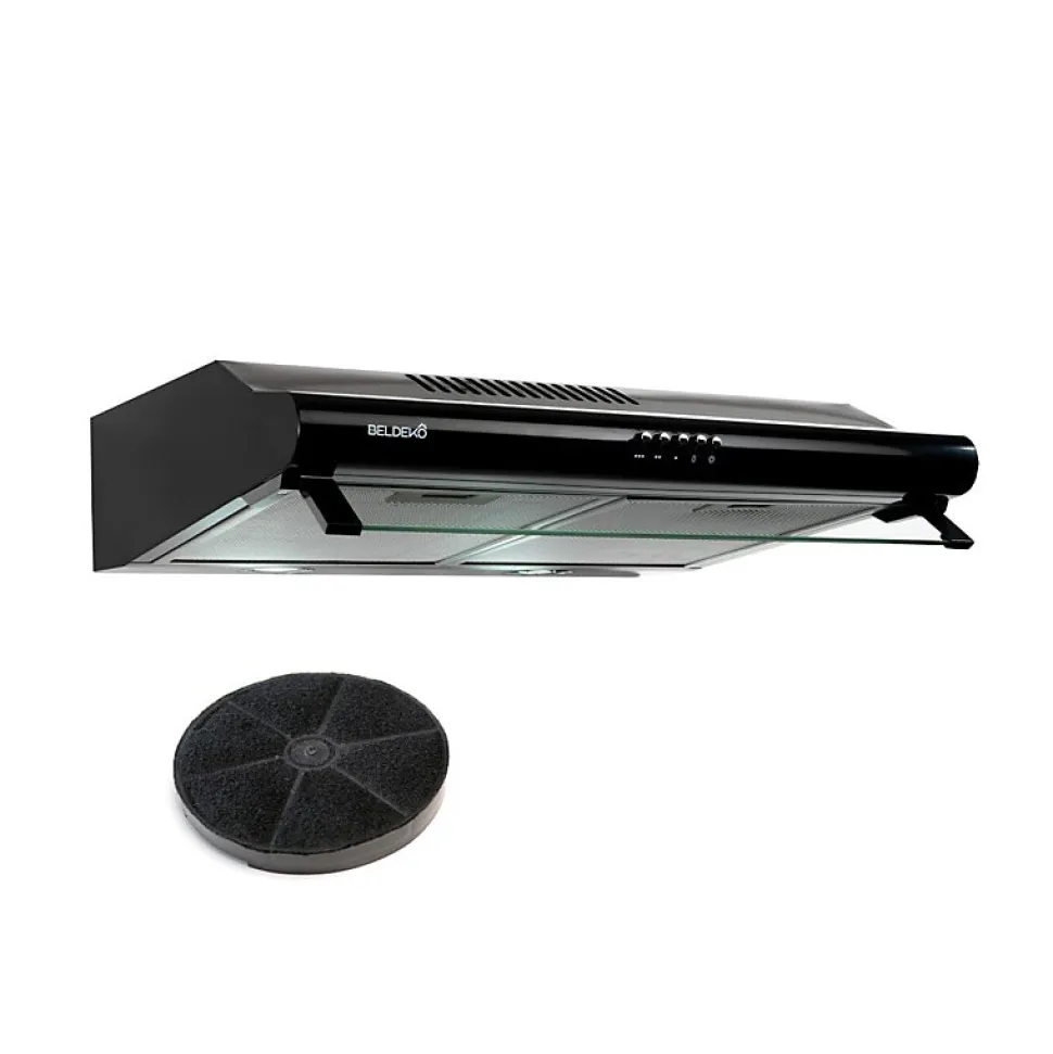 Hotte casquette GRETA 60 BK – Marque BELDEKO – Coloris noir – Matière : acier peint et verre