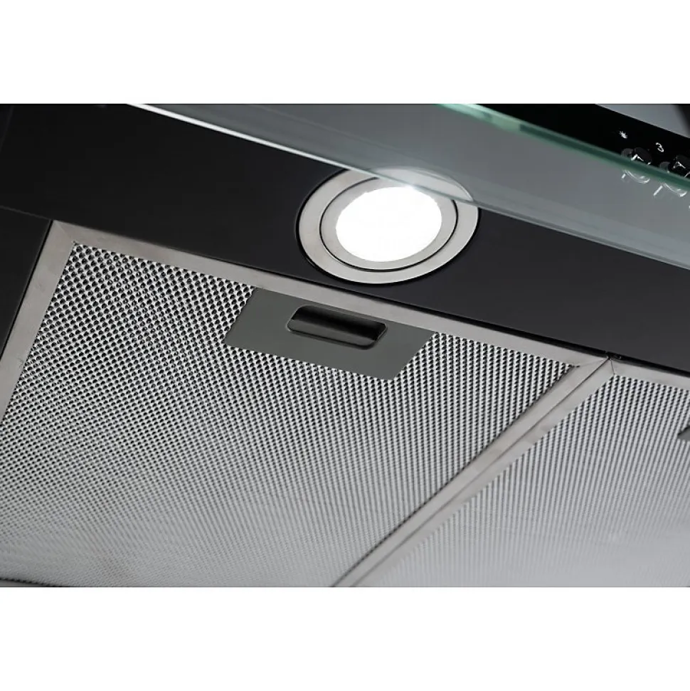 Hotte casquette RIVAGE 60 BK – Marque BELDEKO – Coloris noir – Matière : Acier peint et verre