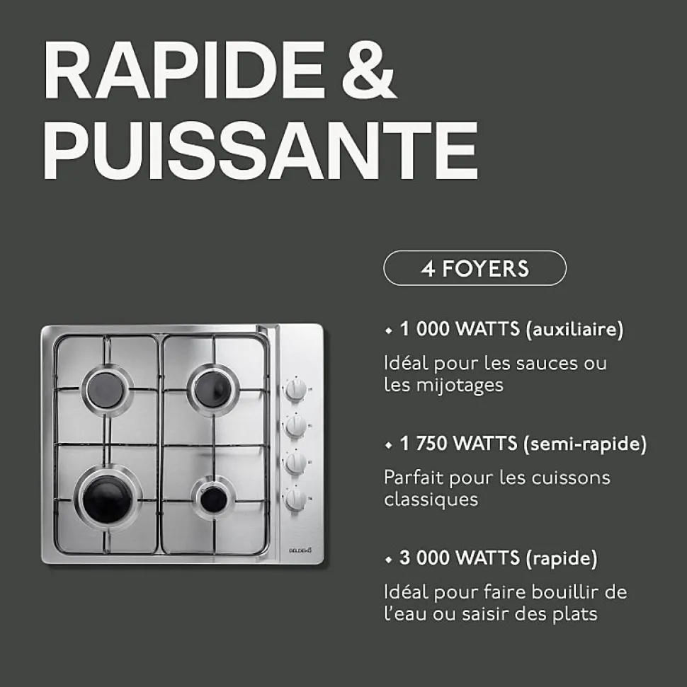 Plaque de cuisson 4 foyers GAZ – BTG4Z-E01IX – Marque BELDEKO