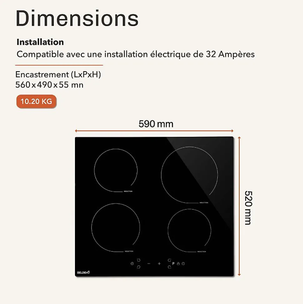 Plaque de cuisson 4 foyers INDUCTION – TI4V-120 – Marque BELDEKO