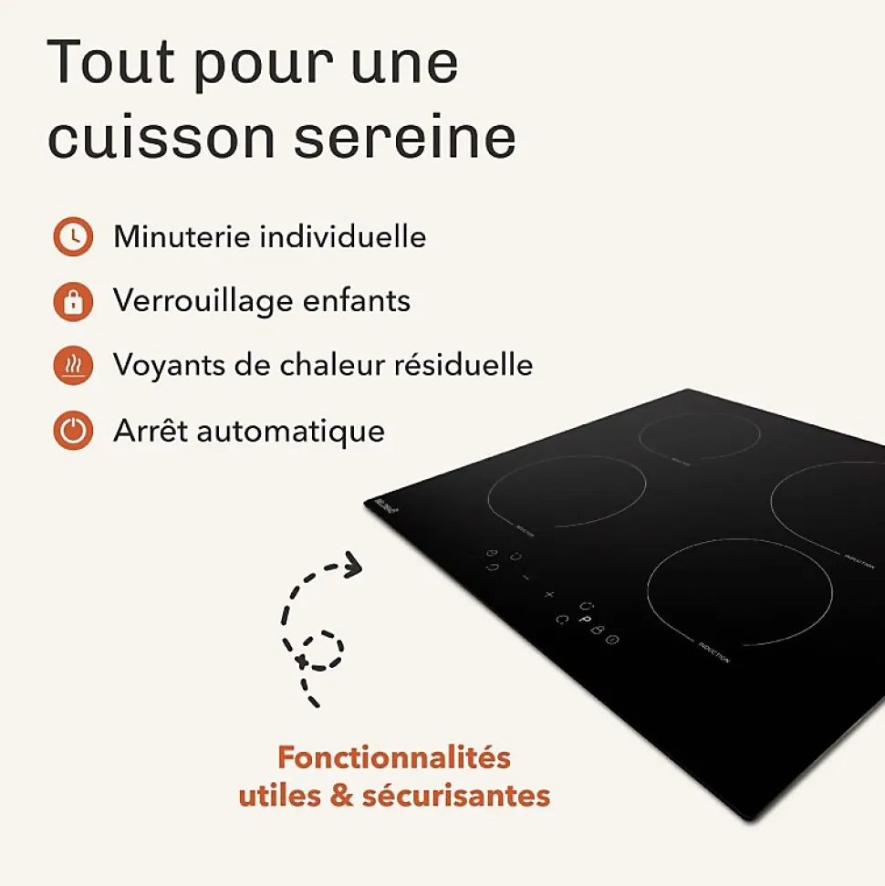 Table de cuisson induction 4 foyers à 9 positions avec minuterie