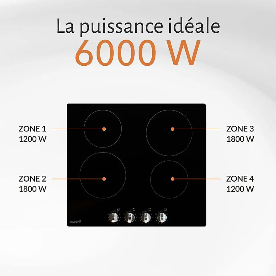Plaque de cuisson 4 foyers VITROCÉRAMIQUE – TV4V-154 – Marque BELDEKO