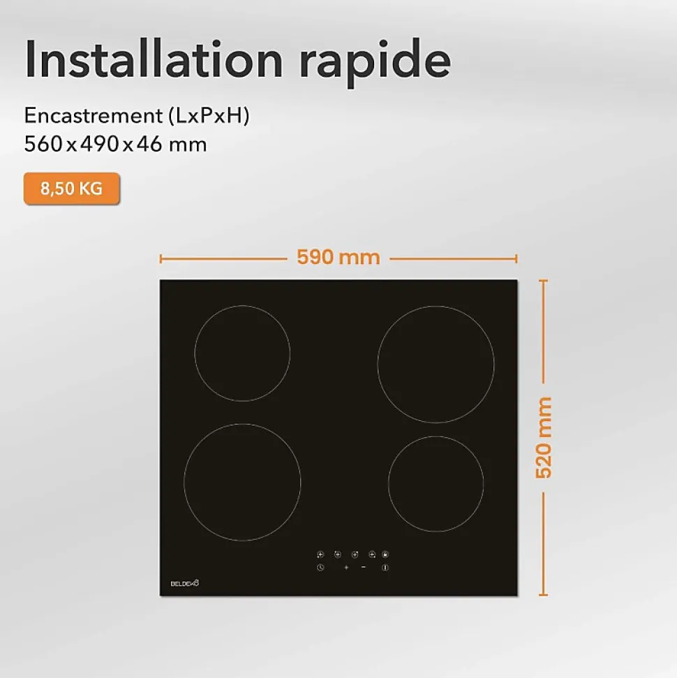 Plaque de cuisson 4 foyers VITROCÉRAMIQUE – TV4V-114 – Marque BELDEKO