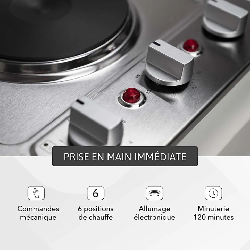 - Type des commandes : Mécanique avec 6 positions de chauffe