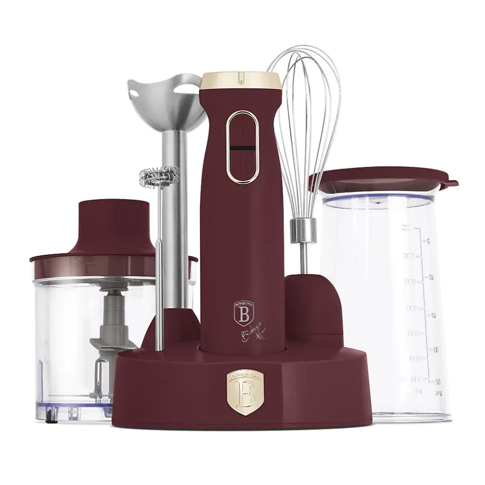 Découvrez la polyvalence et l’élégance du mixeur plongeant 6-en-1 Berlinger Haus, issu de la collection exclusive Leonardo. Avec son design bordeaux mat sophistiqué, cet ensemble est le compagnon idéal de toute cuisine moderne. Équipé d’un puissant moteur de 800 W et fabriqué en acier inoxydable 18/10, il garantit durabilité et performances supérieures. Sa tête pilante et son bol hachoir de 500 ml vous permettent de préparer facilement des smoothies ou des sauces. La lame en titane assure des coupes précises, tandis que le variateur de vitesse vous offre un contrôle total sur vos créations culinaires. Il comprend un verre doseur de 700 ml, idéal pour les smoothies, un mousseur à lait et un fouet, le tout accompagné d’un support multifonction pour une expérience culinaire complète. Les couvercles en silicone multifonctions servent de base antidérapante et de couvercle pour ranger vos préparations. Transformez votre cuisine avec cet ensemble alliant fonctionnalité et style, transformant chaque préparation en un chef-d’œuvre.