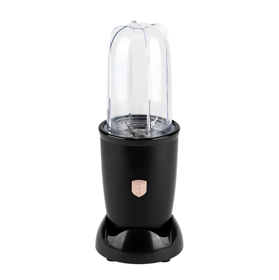 Découvrez l’élégance et la fonctionnalité du blender multifonction 6 pièces de la collection exclusive Black Rose de Berlinger Haus. Avec son design noir et or rose sophistiqué, cet ensemble embellit votre cuisine et transforme votre expérience culinaire. Équipé d’un puissant moteur de 400 W et de lames en acier inoxydable 18/10, cet appareil polyvalent vous permet d’effectuer cinq fonctions essentielles : moudre, mixer, piler de la glace, préparer des smoothies et extraire des jus, le tout d’une simple pression. Sa protection contre la surchauffe garantit une utilisation sûre et prolongée. Il comprend un grand verre de 500 ml, un gobelet de 500 ml, un protège-lèvres, un couvercle robuste et un couvercle pour boire, s’adaptant à tous vos besoins. Conçu pour fonctionner sur une tension de 220-240 V, cet ensemble allie à la perfection style et performance. Donnez une nouvelle dimension à votre créativité culinaire avec le blender multifonction Berlinger Haus et profitez de résultats professionnels dans le confort de votre maison.