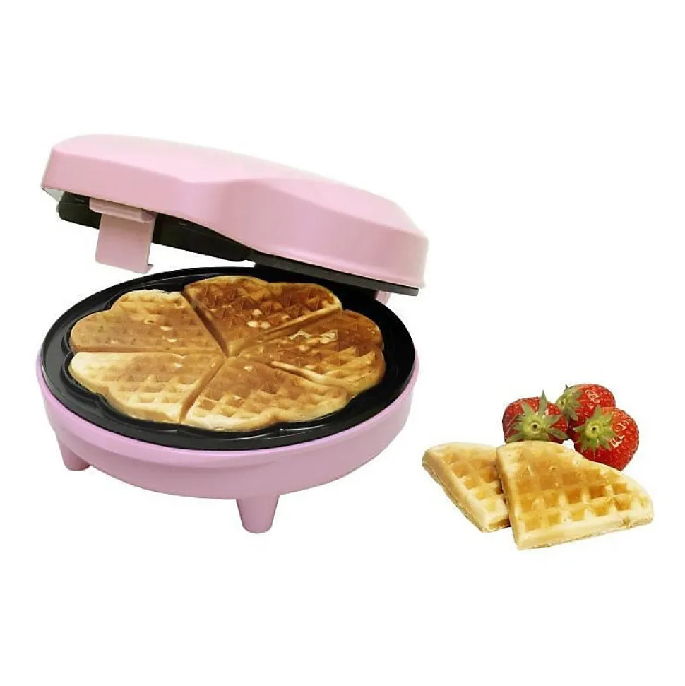 Jusqu’a 5 gaufres en forme de coeur rapidement – Surface des plaques antiadhésive – Corps a parois isolantes – Réglage automatique de la température – Lampe témoin pret a l’emploi + tension – Enroulement cordon – Pieds antidérapants – Facile a nettoyer – Inclus : Recettes – Coloris : Rose Pastel – Garantie : 5 ans