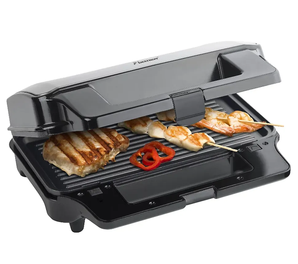 Multi-gril XXL 3 en 1: Croque Monsieur + Gril + Gaufrier 900W 28x15cm en noir/inox