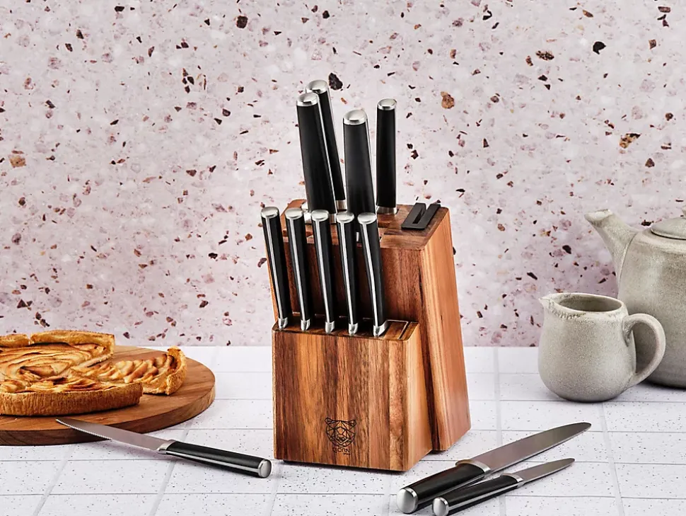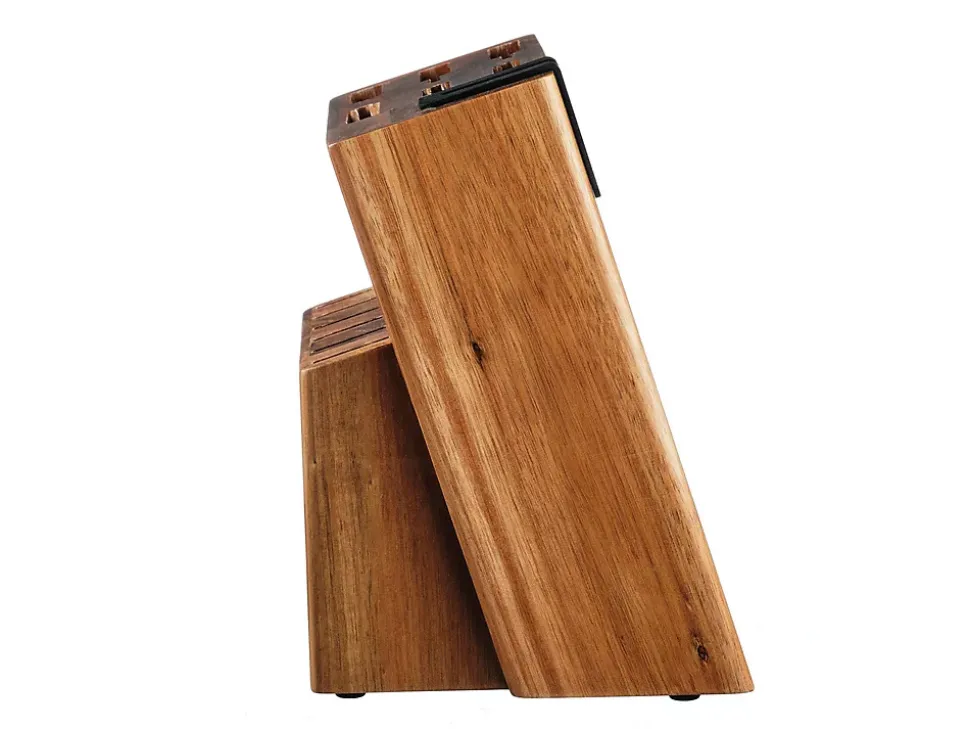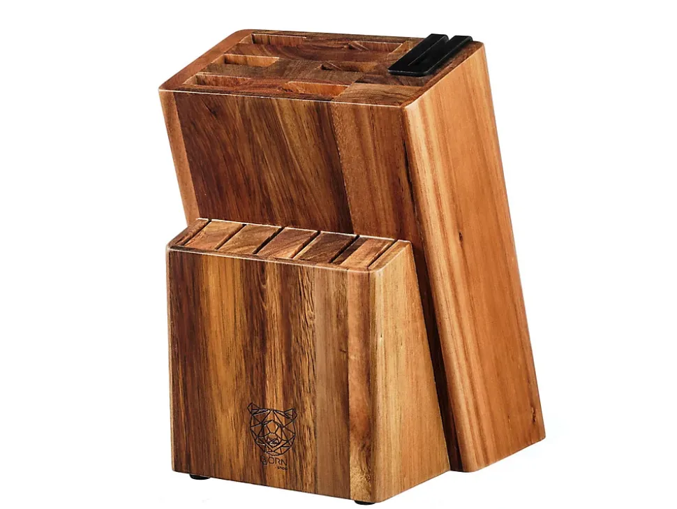 Le bloc couteaux LOVIISA allie fonctionnalités et esthétisme. Aussi polyvalent que pratique, ce bloc vous invite à profiter de sa capacité généreuse de 12 emplacements agencés pour ranger efficacement vos couteaux tout en préservant leur tranchant. Ce qui le rend unique, c’est sa disposition intelligente et complète. Au premier étage se trouvent six emplacements dédiés aux couteaux à steak et au deuxième étage, six fentes réservées aux couteaux de cuisine pour un rangement pratique et ergonomique. Fabriqué en bois d’acacia, un aiguiseur intégré vient compléter ce bloc couteaux intelligent et haut de gamme qui deviendra rapidement un incontournable de votre quotidien.