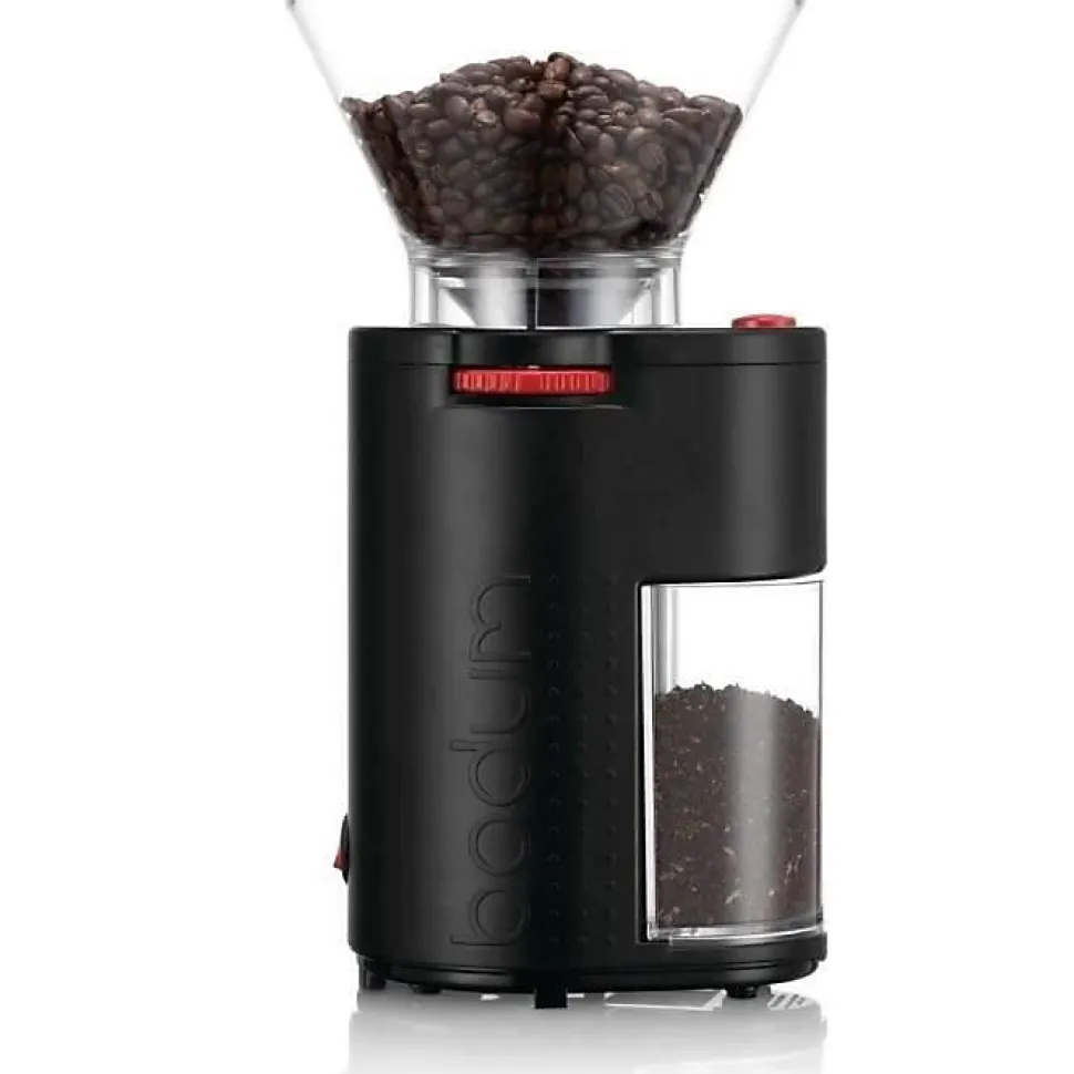 Le broyeur à café électrique BISTRO de BODUM offre une mouture homogène grâce à sa meule en acier inoxydable et un moteur de 160 W. Parfait pour toutes les méthodes, il combine design compact, facilité d’entretien et sécurité conforme aux normes GS, CE et ETL.