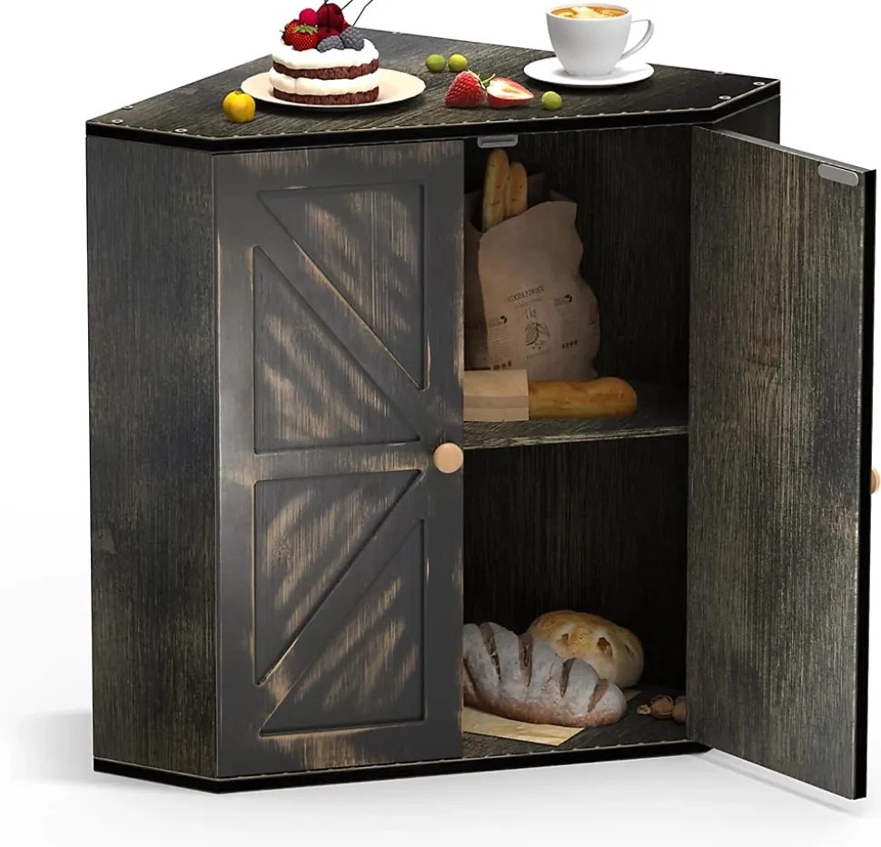 Durable et de qualité alimentaire : notre boîte à pain est fabriquée en bambou naturel, une matière première renouvelable qui est non seulement durable, mais aussi adaptée à un usage alimentaire. Vous pouvez stocker vos aliments en toute sécurité, et le matériau facile d’entretien rend le nettoyage un jeu d’enfant.Grand espace de rangement : le design bien pensé offre non seulement suffisamment d’espace pour le pain, les petits pains, les croissants et les gâteaux, mais aussi pour les ustensiles de cuisine tels que grille-pain, bouilloire ou machine à café. Avec ses dimensions de 43 x 28,2 x 42 cm, il s’adapte parfaitement à votre cuisine tout en créant un espace précieux.Fermeture de porte magnétique pour la fraîcheur : grâce aux aimants puissants, la porte de la boîte à pain reste fermée de manière fiable, de sorte que le pain et les pâtisseries restent frais plus longtemps. La porte ne s’ouvre pas accidentellement et vos aliments sont protégés de manière optimale.Design vintage et fonctionnalité : notre boîte à pain combine la beauté naturelle du bambou avec un design vintage moderne qui attirera tous les regards dans n’importe quelle cuisine. Le design d’angle peu encombrant offre non seulement une esthétique élégante, mais aussi une fonctionnalité pratique