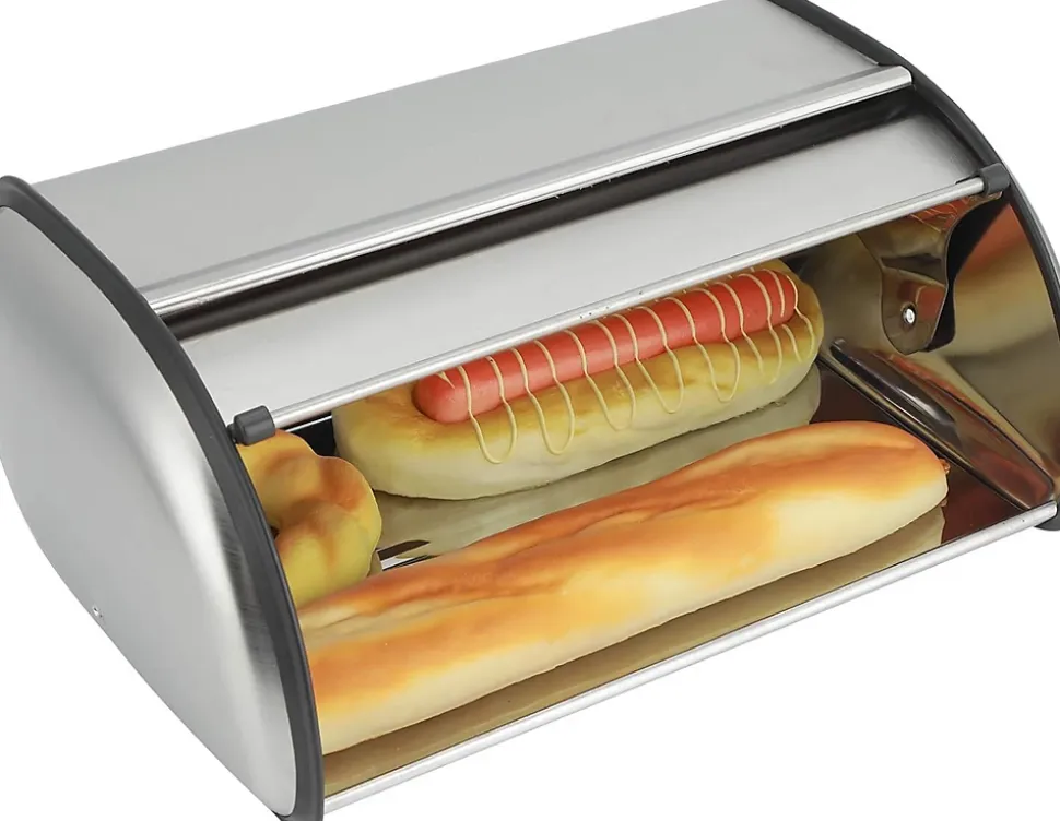 Base antidérapante : la base en plastique antidérapante augmente la résistance et assure un maintien ferme et fiable sur n’importe quelle surface. Votre boîte à pain reste bien en place.Matériau de qualité supérieure : cette boîte de rangement en acier inoxydable est robuste, inodore et résistante à la pression. Il est sûr, garantit une longue durée de vie.Simple et fonctionnel : la poignée ronde simple permet une utilisation facile tout en conservant un design élégant. Le design compact combine étroitement le couvercle et le corps de la boîte et bloque efficacement la poussière, les insectes et les odeurs indésirables[Design de grande capacité] – Stockez votre pain et vos gâteaux confortablement avec le design spacieux de cette boîte de rangement. Dites adieu aux plans de travail encombrés et profitez d’une cuisine organisée