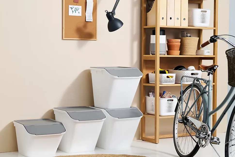 Boîte de rangement 51 L empilable SmartStore Collect Stack It Orthex P.55 cm blanc et gris