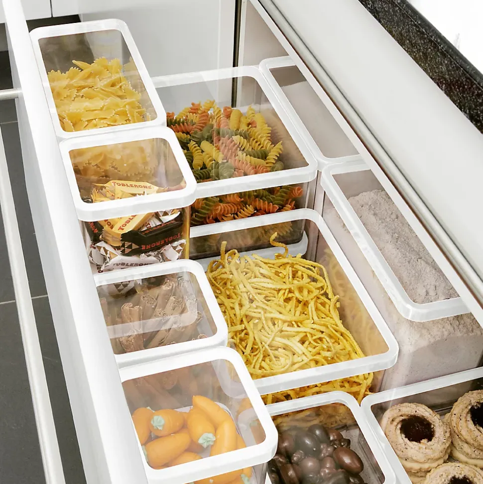 Boite de conservation carrée 2 L. Conserve parfaitement la saveur des aliments. Passe au lave vaisselle. Look très esthétique. Tous les modèles sont combinables pour optimiser l’espace dans vos placards. Superposable.