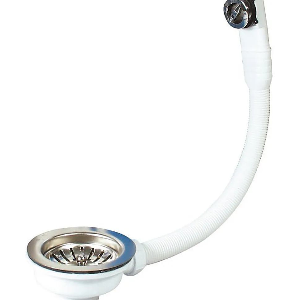 Pour évier grès ou en matériau composite Grille et plateau finition inox Perçage : Ø 90 mm Plateau : Ø 114 mm