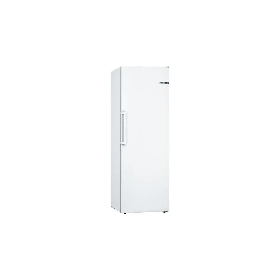 Congélateur armoire Bosch GSN33FWEV – Ce modèle pose-libre de la série 4 vous propose un volume utile de 225 L pour répondre aux besoins de stockage de toute la famille – Grâce à la technologie NoFrost, finis les dégivrages fastidieux – Le froid ventilé associé au système Multi Airflow assure une température homogène et rapide dans l’ensemble de la cavité – Avec la fonction Super-congélation automatique, les aliments récemment ajoutés sont rapidement surgelés sans affecter ceux déjà stockés – Les capteurs FreshSense garantissent une température constante pour une conservation optimale – Ce congélateur offre une grande modularité grâce au système VarioZone avec clayettes amovibles et 5 tiroirs transparents dont un grand tiroir BigBox pour les pièces encombrantes – La régulation électronique avec affichage LED permet un réglage simple et précis – En cas de hausse de température ou de porte mal fermée, une alarme visuelle et sonore vous alerte – L’autonomie est de 9 heures en cas de coupure et le pouvoir de congélation atteint 19 kg en 24h – Ce modèle blanc, doté de poignées verticales et d’une ouverture sans débord à 90°, mesure 176 x 60 x 65 cm – Livré avec deux accumulateurs de froid et un bac à glaçons. Caractéristiques Volume (total) 225 L Type de froid No-Frost Pouvoir de congélation 19 Kg/24H Autonomie 9 heures Niveau sonore 39 dB Conso élec. 229 kWh / an Labels et points clés Label énergie E Catégorie sonore C Le + produit No-Frost MultiAirflow Disponibilité des pièces détachées 11 ans (donnée constructeur) Régulation électronique Affichage T° oui Alarme oui Connecté non Classe climatique SN-T Porte(s) réversible(s) oui Coloris blanc Dimensions (LxHxP) 60 x 176 x 65 cm Poids net 62,7 Kg Lieu de fabrication Pologne