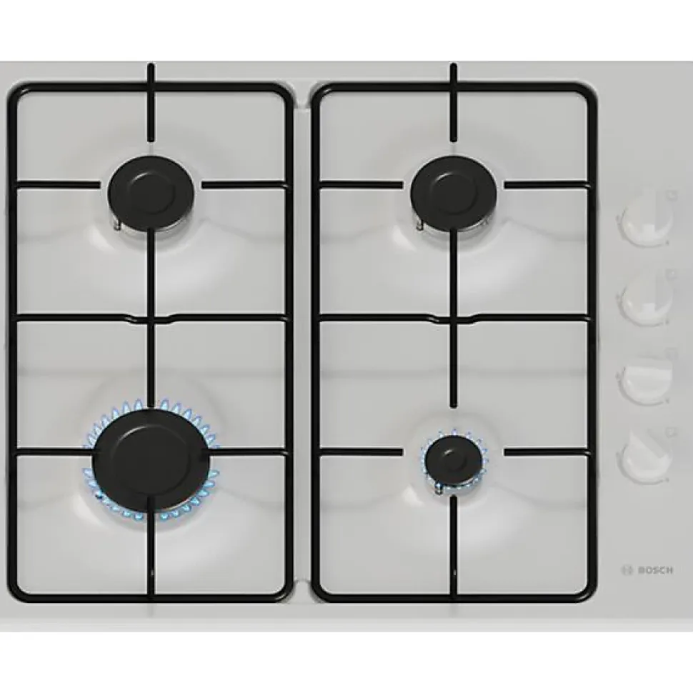 Table gaz Bosch PBP6B2K80 Série 2 60 cm – 4 foyers dont un puissant brûleur rapide de 3 kW pour une cuisson efficace – Commandes latérales avec boutons ergonomiques offrant une bonne prise en main – Allumage électrique intégré pour un allumage facile et sécurisé – Sécurité thermocouple qui coupe automatiquement l’arrivée de gaz en cas d’extinction de la flamme – Surface en émail blanc, à la fois élégante et facile à nettoyer – Grilles émaillées robustes pour une stabilité parfaite de vos casseroles et poêles – Compatible gaz naturel et butane/propane (injecteurs fournis) – Installation encastrable dans une niche standard – Compacte et performante, cette table gaz est idéale pour une cuisine pratique au quotidien. Caractéristiques Matière émail Brûleur gaz 4 Foyer(s) droit AV -/1 _ AR -/1,75 cm/kW Foyer(s) gauche AV -/3 _ AR -/1,75 cm/kW Labels et points clés Le + produit Allumage électrique intégré Disponibilité des pièces détachées 11 ans (donnée constructeur) Bandeau latéral Commandes manettes Coloris table blanc Grilles émaillées Injecteurs équipée pour le gaz naturel – Livrée avec injecteurs butane/propane Dimensions Hors tout (LxHxP) 58 x 5,18 x 51 cm Dimensions Encastrement (LxHxP) 56 x 4,5 x 48 cm Poids net 6,8 Kg Alimentation 220-240 V / 50-60 Hz / 3 A Cordon électrique fourni (100 cm) sans fiche Connecté non Lieu de fabrication Espagne