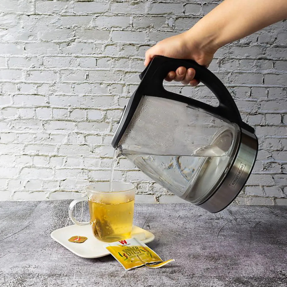 Bouilloire électrique en verre borosilicate – 1,7L, 2200W Cette bouilloire allie design moderne, performance et sécurité : – Puissance : 2200W Max, pour chauffer rapidement l’eau. – Tension : Compatible 220-240V~ 50/60Hz. – Capacité : Réservoir de 1,7L, idéal pour les besoins quotidiens. – Matériaux : Corps en verre borosilicate durable, avec une poignée en plastique PP ergonomique et résistante à la chaleur. – Base rotative à 360° : Pratique pour les droitiers et gauchers, avec câble d’alimentation sans fil. Systèmes de sécurité avancés : – Arrêt automatique après ébullition de l’eau. – Protection anti-séchage (absence d’eau). – Système de fusion en cas de surchauffe. Design et fonctionnalités supplémentaires : Le fond est équipé d’une lumière LED élégante pour une expérience visuelle agréable lors de l’utilisation. Cette bouilloire associe efficacité, style et sécurité pour répondre à vos besoins quotidiens avec élégance.