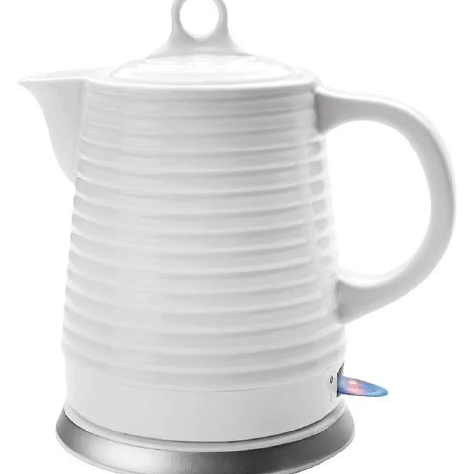 Découvrez la bouilloire électrique en céramique blanc de la marque LACOR. Avec une puissance de 1500 W et une capacité de 1,2 litre, elle est équipée d’un interrupteur lumineux et d’un verrouillage couvercle pour une utilisation en toute sécurité. Son design traditionnel en céramique apporte une touche d’originalité à votre cuisine. Indicateur du niveau max intérieur en plastique.
